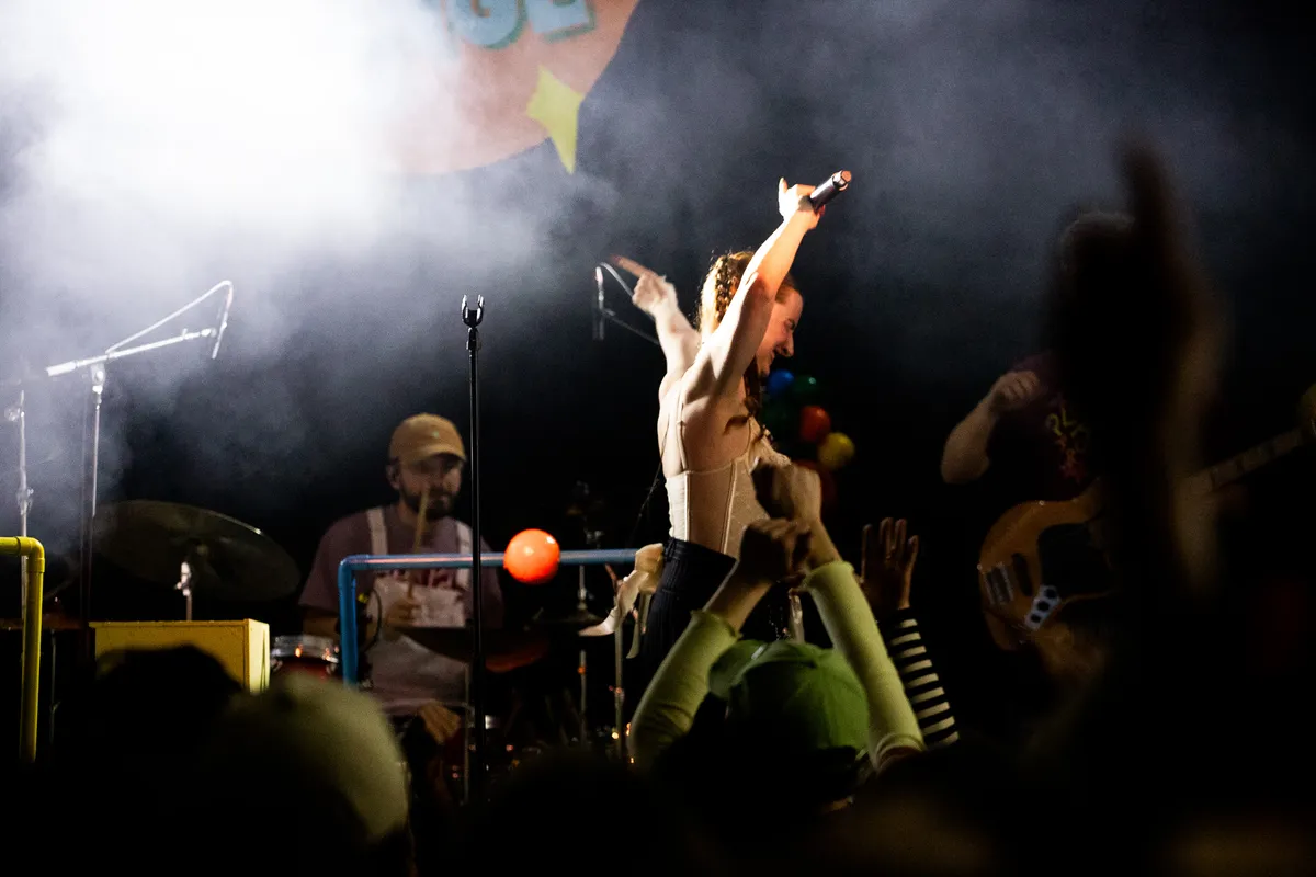 Na het liefdeslied French in High School vertelt GINGE wat meer over haar album, er zit namelijk meer achter de titel Playing Around: ,,Ik hou ervan om het leven te zien als een speeltuin”, vertelt ze. Volgens haar moeten we het leven niet te serieus nemen en genieten. Echter draait het album niet alleen daar om, er worden ook serieuzere onderwerpen behandeld. Liefdesverdriet bijvoorbeeld: het volgende nummer, Insulin, gaat over een mislukte liefde. ,,Nooit iemands geheimpje worden”, geeft ze nog als tip mee voordat ze beginnen. Ze vraagt het publiek de handen omhoog te doen en een zee van handen in de lucht volgt.