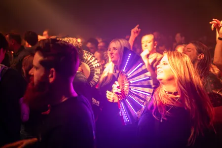 Tijdens het laatste nummer klimt een groot deel van het publiek het podium op om daarmee de avond af te sluiten tussen de artiesten en de entourage van gladde paling. Als ik om mij heen kijk, zie ik vooral blije gezichten. De gecontroleerde chaos van gladde palings ‘Onderwaterwereld’ heeft zijn werk gedaan.