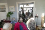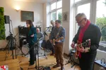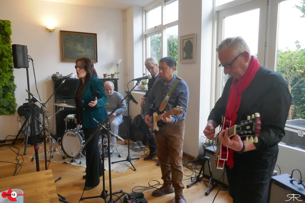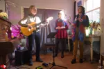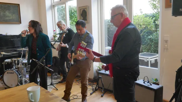 We staan in een schitterende, ruime woonkamer. “Het is een voormalig archief", vertelt Maarten, onze gastheer. Hier speelt een band uit Wassenaar, met uitlopers naar bijvoorbeeld Noordwijk en Noordwijkerhout. Covers van bluesy rock, indierock en pop worden verzorgd door twee gitaristen, een bassist, een drummer en een zangeres (en daarmee The Duchess?). Klassiekers van Golden Earring, Jefferson Airplane en Radiohead (‘Creep’) komen voorbij. Later die middag staan op het menu: Amy Winehouse, The Cranberries, Ben E. King (‘Stand by me’) en Bowie (‘Heroes’).