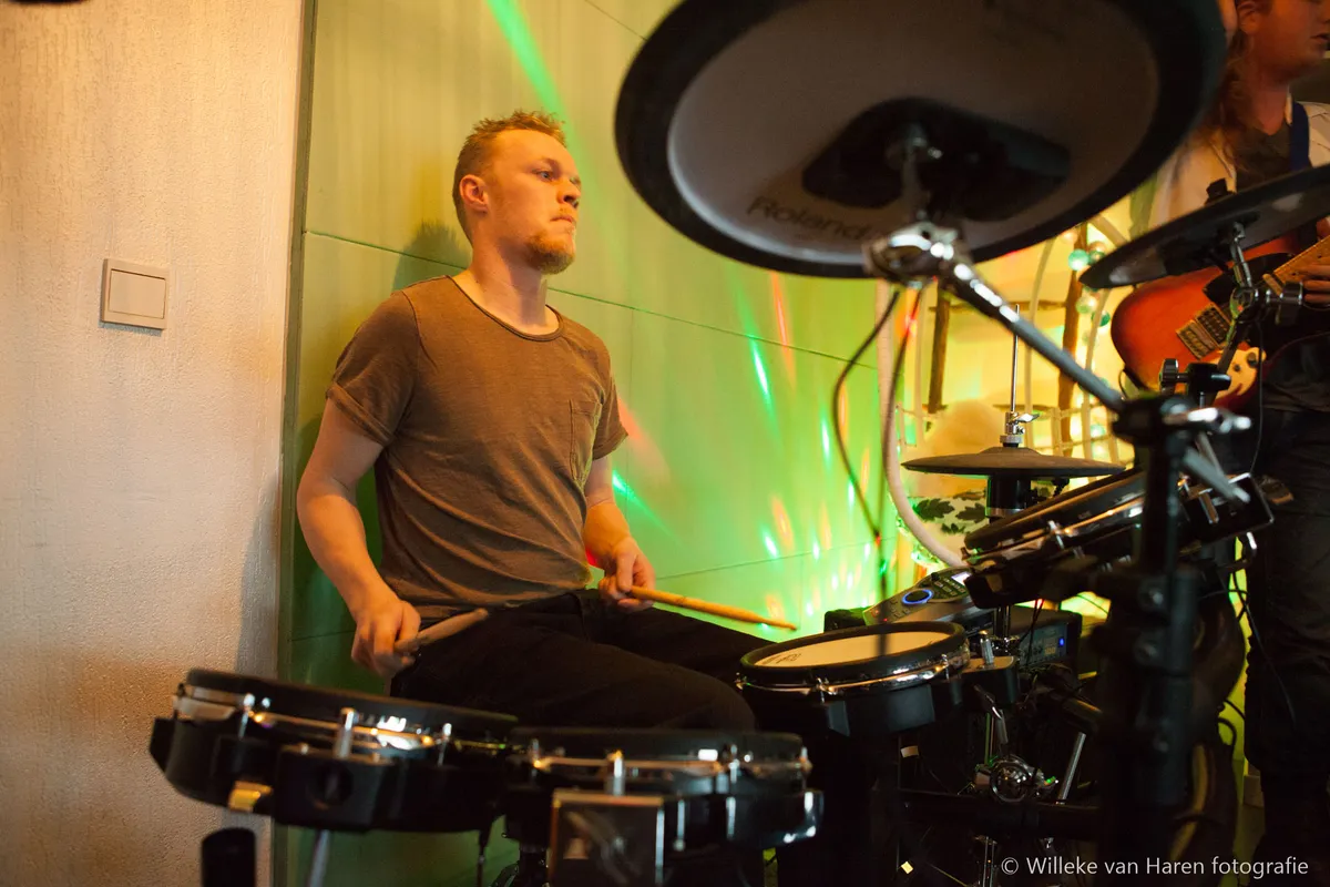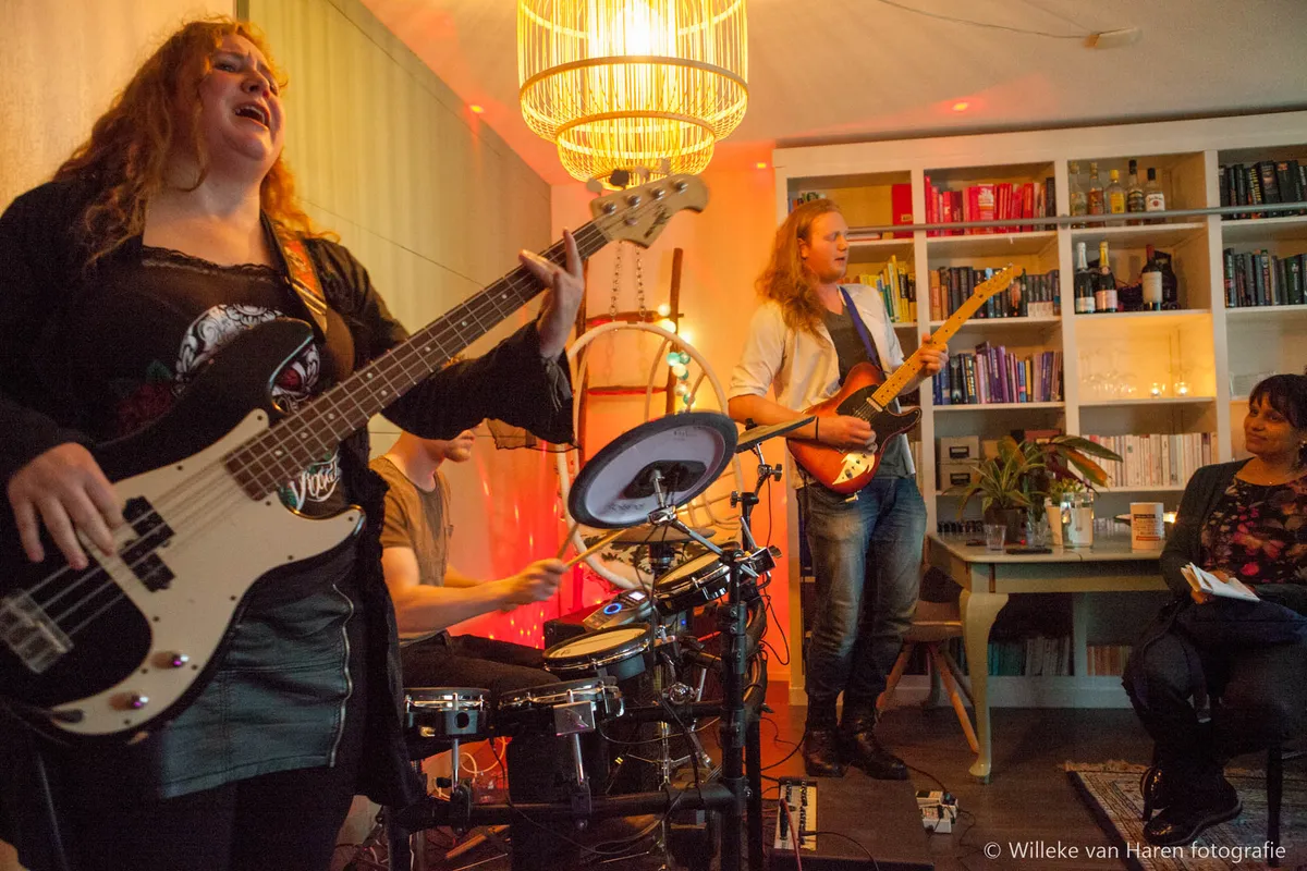 De storm is inmiddels al hard aan de gang, laten we dan ook maar wat stevigere muziek uitzoeken. Like Fire laat ons van tevoren stemmen welk van de drie optionele nummers ze in de set kunnen meenemen en welke niet. En we genieten van een vlammende set. De tonen van het rocktrio komen hard boven de wind uit. Tussendoor komen er regelmatig schalen met bitterballen en andere hapjes langs, we hebben het prima naar ons zin!
