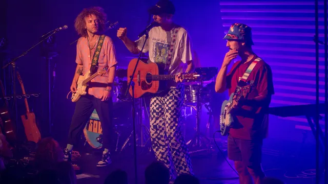 En meer krijgen ze, want de sferische, zomerse gitaar- en baslijnen van het duo klinken even later opnieuw door de zaal, dit keer aan de zijde van Martijn Konijnenburg, alias Goldkimono. Wanneer de vierkoppige band gekleed in Hawaiiaanse blousjes en net iets te grote zonnebrillen het podium opkomt, is meteen duidelijk dat we vanavond een vrolijke avond tegemoet gaan. Vorig jaar stond Goldkimono nog in de Paradox om zijn debuutalbum The Legend Of The Goldkimono te laten horen, voor de clubtour van zijn tweede album Something Out Of Nothing promoveert hij naar de Next van 013. Opvallend is dat het publiek al veel nummers van het nieuwe album kent, de catchy teksten van zijn laidback popsongs met lichte reggae-invloeden zoals ‘Lost In My Head’ en ‘Hello’ worden het hardst meegezongen. Nog altijd klinkt hij net zo vrolijk en zomers als op de songs van zijn eerste album, maar we horen in de rustigere nummers als ‘Melancholy Rain’ ook hints naar bands als The Red Hot Chili Peppers. De flow en afwisseling tussen uptempo en initimiteit is aangenaam en ook speelt Goldkimono een aantal nummers van het eerste album, waaronder natuurlijk zijn doorbraakhit ‘To Tomorrow’.