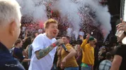 Gruppo Sportivo, een formatie die in de jaren zeventig hits scoorde als ‘Beep Beep’, ‘Love Hey Girl’, en ‘Disco Really Made It’. Vorige maand overleed de toetsenist van de band en vanavond staat de band in de tent op Graauw. Als special guest is saxofonist Jan Cees Tans ingevlogen, die even verderop in Paal zijn eigen restaurant runt. Tof! De act zelf is er eentje waarvan het ijzer inmiddels van is geroest. Rowwen Hèze gooit het niveau vele slagen hoger en weet de balans te vinden tussen hossen, een traan wegpinken en meeblèren. The Kik gaat met hun laatste album ‘Bal Populaire’ de bühne op deze festivalzomer. Op dit album vinden we veel smartlappen en het levenslied terug. De set bevat verder veel eigen werk en wat covers. The Kik krijgt het publiek van voor tot ver achterin de tent mee.