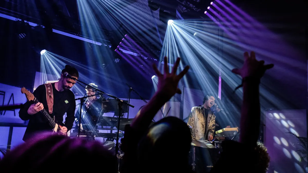 Bij het inrichten van een nieuwe woning moet je vaak een paar keer schuiven met het meubilair voordat de opstelling echt klopt. Hetzelfde geldt voor festivallocaties. Hoewel er tijdens de eerste editie in Scheemda al goed gebruik werd gemaakt van het pand en wij toen al erg enthousiast waren, lijkt Grasnapolsky nu pas echt goed in De Toekomst te zitten. Veel is hetzelfde gebleven, maar het zijn altijd de kleine dingetjes die het hem doen. Waar bezoekers vorig jaar buitenom moesten lopen om bij een ander podium te komen, wat door weer en wind voor veel irritatie zorgde, is dit jaar de sloophamer ter hand genomen om de tussenmuren te voorzien van passages. Alleen voor de foodtrucks, toilet, en een aantal onderdelen van het kunst- en expeditieprogramma, zoals de kunstinstallatie Hyperplanar in de Hakselaar, moet je nog naar buiten. Een kleine aanpassing met een grote impact. In dit seizoen is het namelijk erg prettig om niet telkens om het hele gebouw heen te hoeven om de volgende show te zien. Daarnaast voelt het festival ook meer als één geheel, waardoor je ook minder het gevoel hebt mogelijk iets te missen. Ook de eetgelegenheden bieden meer garantie op een droge outfit. Waar je vorig jaar nog onder een tentdoek zat waar de regen onderdoor waaide, zit je nu in een knusse groentekas die voor de gelegenheid op het terrein is gezet.