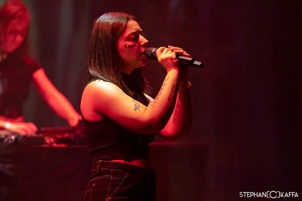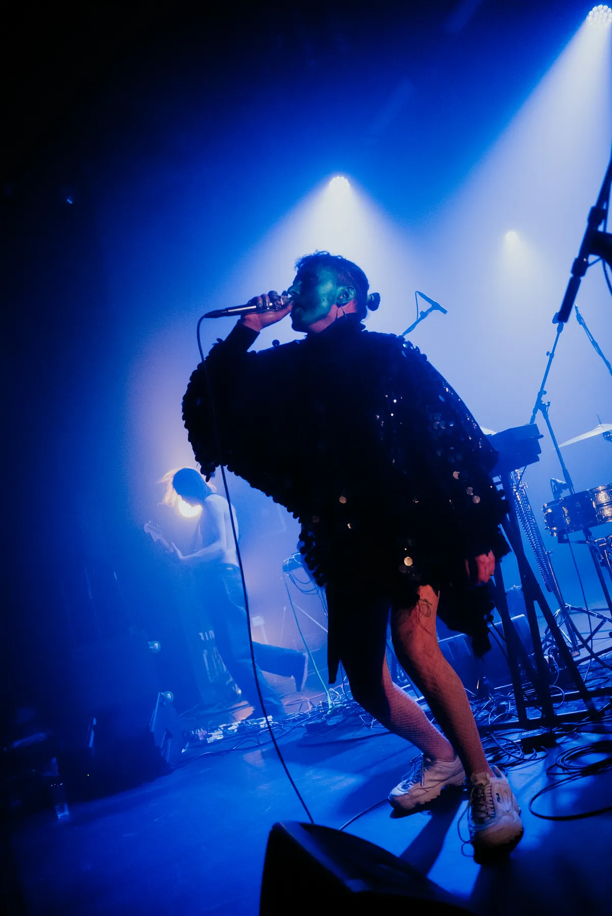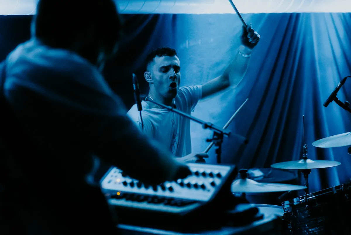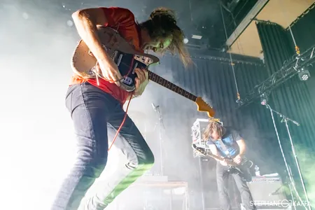 Die blijft helaas niet heel lang hangen. Tijdens het optreden van Tempers in de wederom uitpuilende Kleine Zaal dwalen onze gedachten namelijk regelmatig af. Waarom is het goedkoop als Wolter Kroes over een backing track zingt en legit als een zangeres van een synthpopduo het doet? Nee, niet afdwalen, focus! Wat horen we? Voortkabbelende synths met minimalistische beats, voortgebracht door Eddie Cooper, die ook een basgitaar vast heeft. Ok, backing track was misschien wat kort door de bocht, want hij speelt er ook nog wat bij. En dan is er nog de zang van Jasmine Golestaneh die opvallend vaak vals is. Hoe zou die karma kebab eigenlijk smaken? Het ruikt best lekker. En in welk jaar stond Idles ook alweer op Grauzone? Dat was 2018. We geven het op, op naar Sqürl.