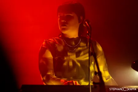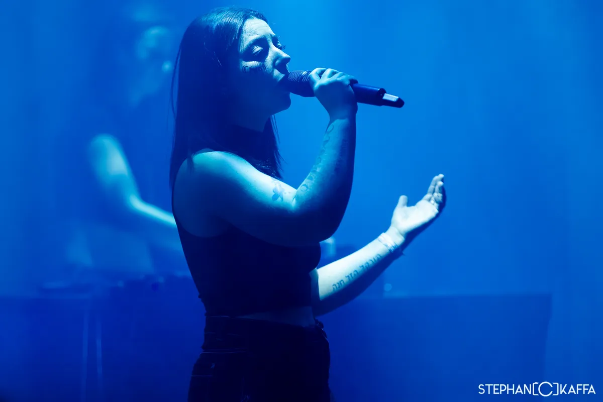 De eerste act die we zien op het festival is Minuit Machine, een Frans tweetal bestaand uit Hélène Thoury en Amandine Stioui. De Kleine Zaal van PAARD staat zo vol dat er geen muisje meer bij kan. Dat maakt bewegen lastig en dat is jammer, want het type muziek dat het duo maakt, is van het uiterst dansbare soort. Keiharde, beukende, industriële technobeats met praatzang, het type muziek dat best zou kunnen werken in een zweterige kelder om drie uur in de nacht. Ergens op het balkon van de zaal staat een enkele geluksvogel met voldoende ruimte om wel te dansen.