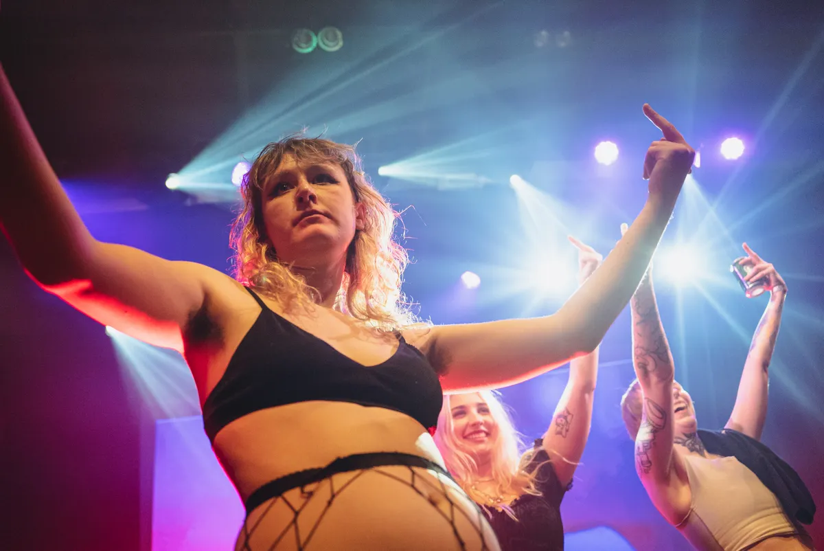 Waar Ambassade niet helemaal wist te overtuigen, doet Ditz dat wel. Het optreden van de band uit Brighton bewijst ook weer eens dat de kelder van The Grey Space een van beste plekken van de stad is om een optreden mee te maken. Zanger Cal Francis, gekleed in rok, panty en hoge hakken, is met zijn fles wijn of al zwaaiend met zijn microfoon het nonchalante middelpunt van de band. Hij schreeuwt en fluistert, ondersteund door de band die hoekige en groovende drums, spookachtige gitaren en nietsontziende basakkoorden aflevert. Het publiek – waaronder stadsgenoten Lambrini Girls – staat zo dichtbij het podium dat het onderscheid tussen hen en de band lijkt te verdwijnen. Ditz levert met zijn post-hardcore een optreden af waar je helemaal in op kan gaan, met behulp van de fantastische ruimte.