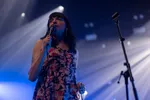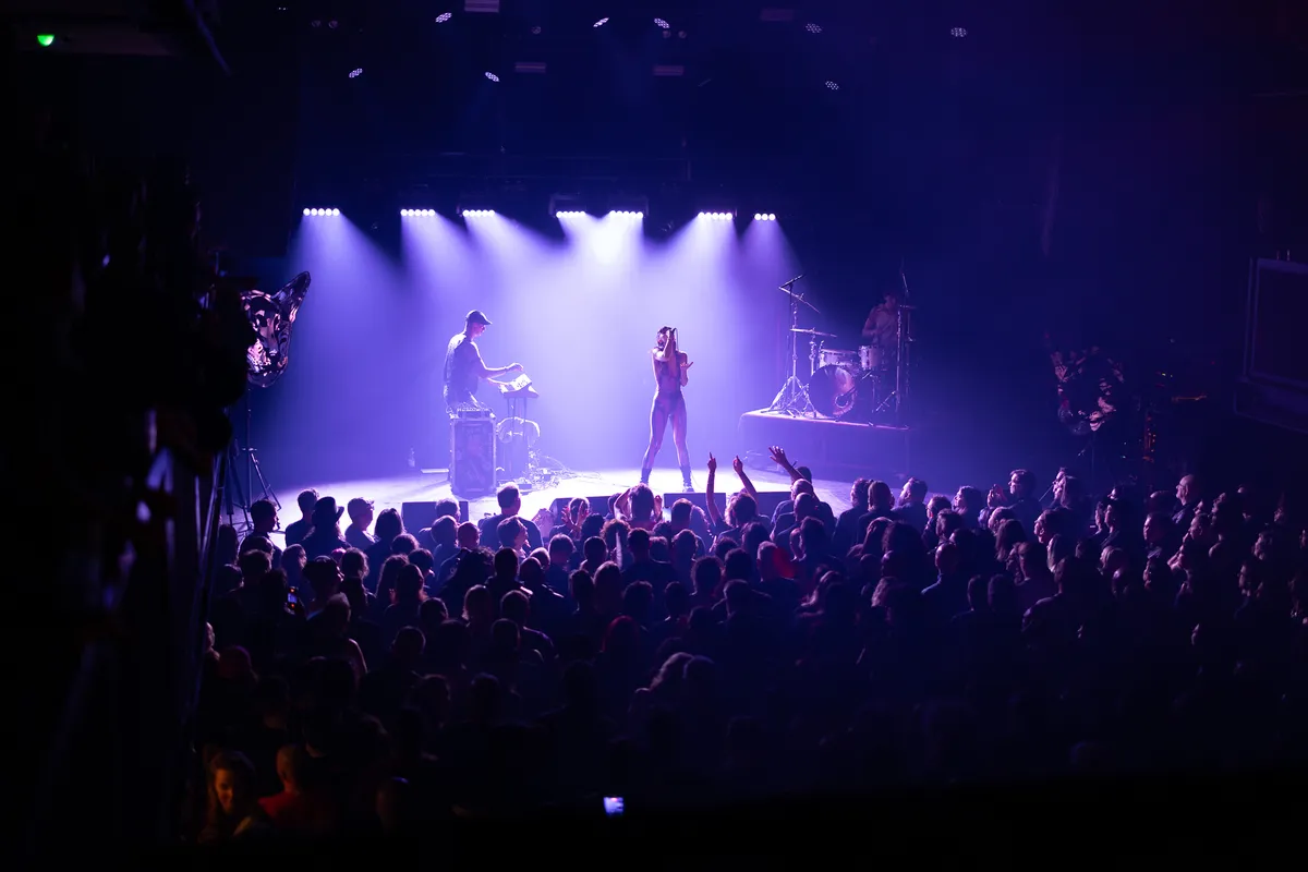 Het lijkt alsof de nacht vroeg is begonnen met de donkere elektronische act Pixel Grip in de Grolsch zaal. Het trio met live drums en synths pompt de beats en zware bassen met industrial feel de zaal in, wat ook naar voren komt op het vorig jaar uitgekomen album Percepticide: The Death Of Reality. De start is wat lastig wegens de geluidsproblemen bij zangeres Rita Lukea, maar eenmaal op gang loopt de show die je er langzaam intrekt. Lukea, in een soort sexy space catsuit, is iemand waar je geboeid naar blijft kijken en ze spreekt het publiek aan met uitspraken als ‘live music makes me horny’. Ondanks de donkerte van de nummers als ‘Dancing On You Grave’ - ‘wat doen we met onze abusers?’ - blijft het mede door de zanglijnen en teksten wel hangen. Als de zangeres het laatste nummer aankondigd blijkt dat er al bijna een uur verstreken is. Van voor tot achter in de zaal staat niemand meer stil door knallende afsluiter ‘Bet You Do.’.