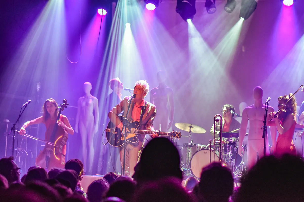 Het concert begint met een kort gedicht: “Wij zijn een menigte, Jij bent een menigte, Ik ben een menigte, Wij zijn een menigte.” Op het podium staat ook een menigte. Niet alleen de band, maar ook een tiental paspoppen die willekeurig over het podium verdeeld staan. Er worden feitjes verteld over die zogenoemde menigte door celliste Saartje van Camp: “Wist je dat we 522 koeien per jaar eten? Wist je dat 22% van de mensen homoseksueel is? Wist je dat 5% van de mensen..” “Homo is?” zegt Erik. “Nee, linkshandig.” Dit is Spinvis. De band draagt niet alleen nummers voor, maar vermengt dat ook met een beetje theater. Erik’s poëtische praatzang vormt in combinatie met de instrumentatie van zijn vijfkoppige band een zaalvullend, mooi geheel. Ook op 62-jarige leeftijd wil de Utrechtse sample-muzikant nog altijd de grenzen van wat muziek is blijven verleggen en aan de beduusde reactie van het publiek is af te lezen dat hem dat nog steeds lukt.