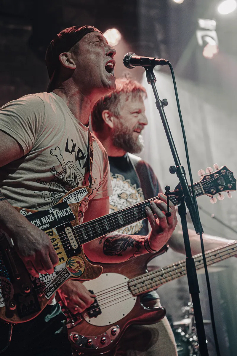 Stipt om half drie trapt Colère uit België af. In een rap tempo jagen de Belgen hun korte hardcorepunknummers er keihard en slordig doorheen. We krijgen onder andere de songs ‘Vida’, ‘Slagfalt’ en ‘Out of Control’ voorgeschoteld, samen met een cover van ‘Do You Love the Nazis’ van The Kids. In een voldruppelende kleine zaal laat het optreden ons helaas koud achter. Echt onderscheidende elementen heeft de show niet en hoewel de blonde frontvrouw erg grofgebekt is, heeft ze net iets te weinig power in haar stem om volledig tot ons door te dringen.