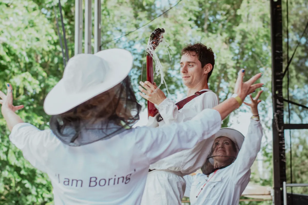 Ietwat minder te pruimen vindt het publiek Bumble B. Boy, een Australische en absurdistische post-punk act. Zijn missie om een zakenimperium op te bouwen en een van de meest invloedrijke figuren in de muziek te worden kan bij een deel van het publiek op waardering rekenen, maar voor de helft komt de wervelwind van de imker en zijn twee danseressen wat te vroeg op de dag.