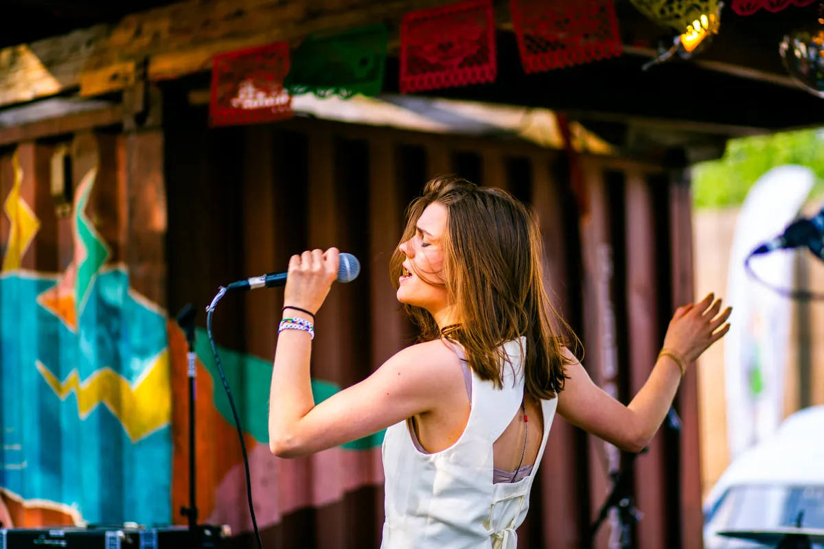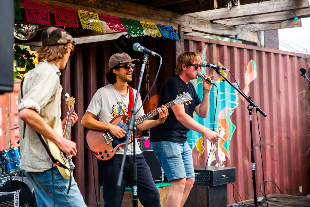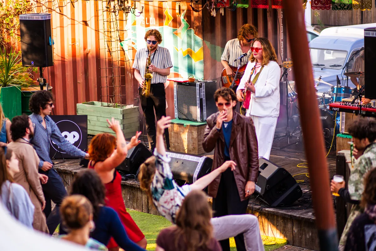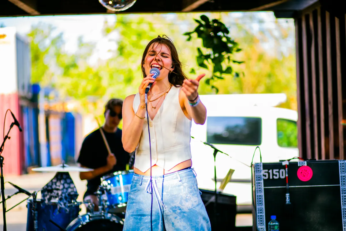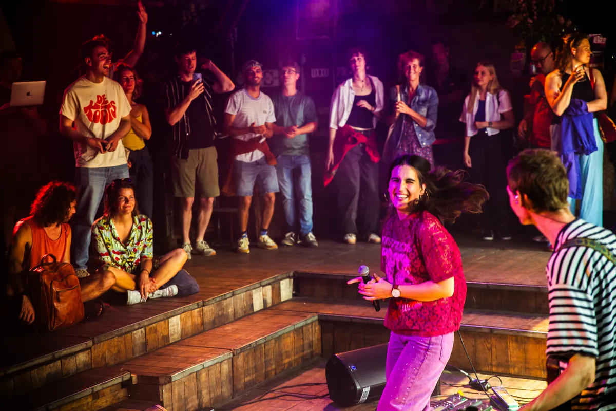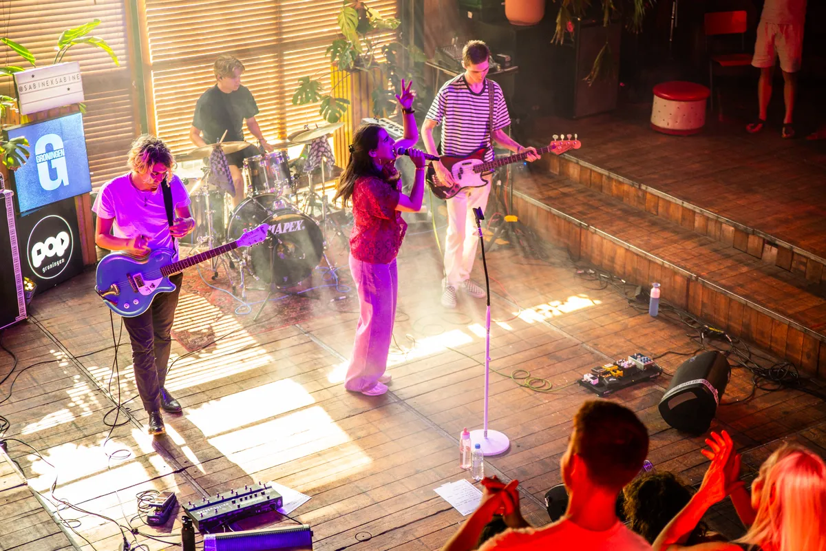 Binnen werpen de zonnestralen plasjes licht op de vloer, buiten ruikt het naar verse pizza; de optredens wisselen elkaar op twee podia af. Dit is precies het soort avond waar EM2 voor gebouwd is: afgelopen zondag 15 juni was het weer tijd voor de jaarlijkse presentatie van Grondslag. Dit coachingstraject is een samenwerking van een aanzienlijk deel van de Groningse culturele sector: ESNS, SPOT, Vera, Simplon, Noordstaat, EM2 en POPgroningen.