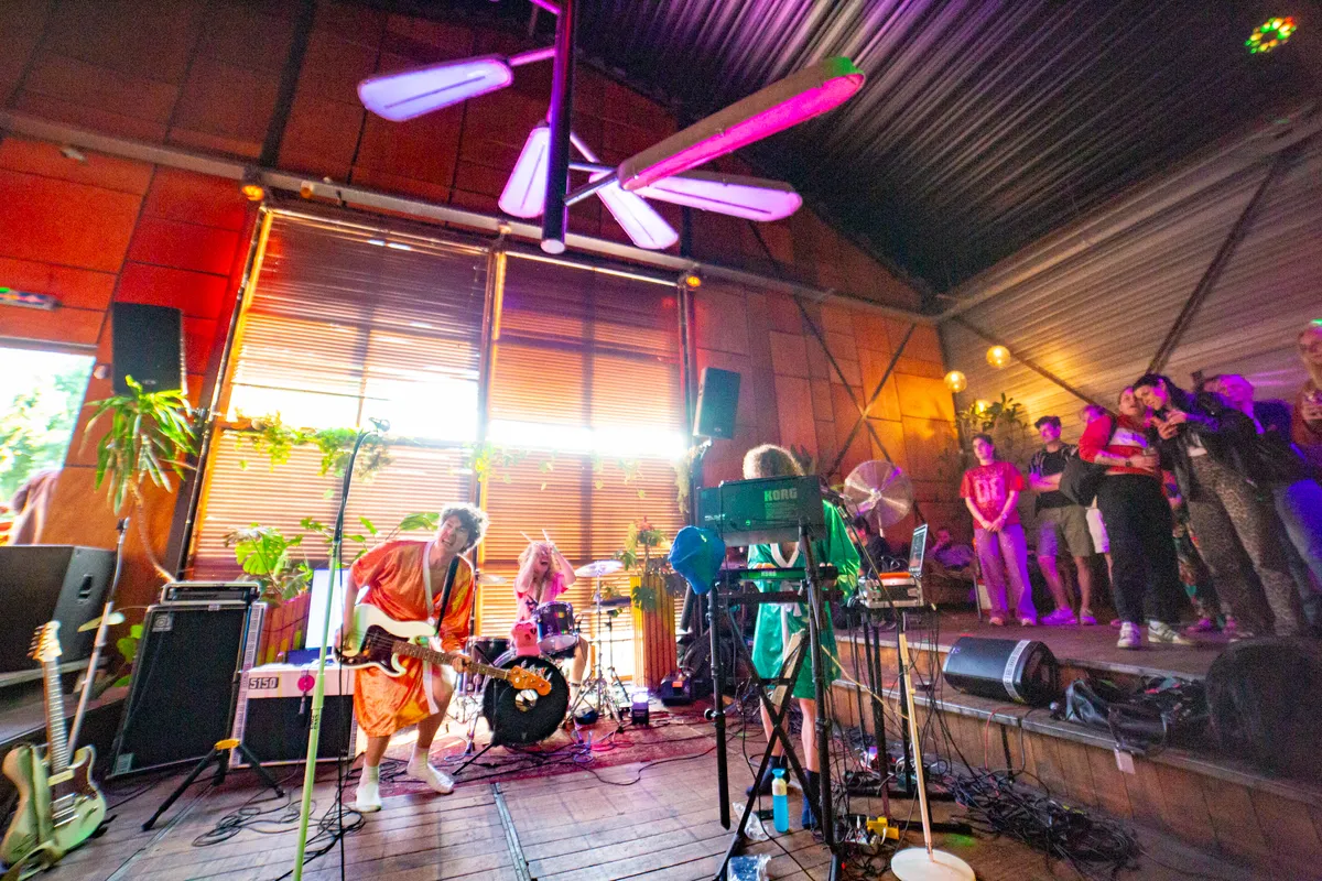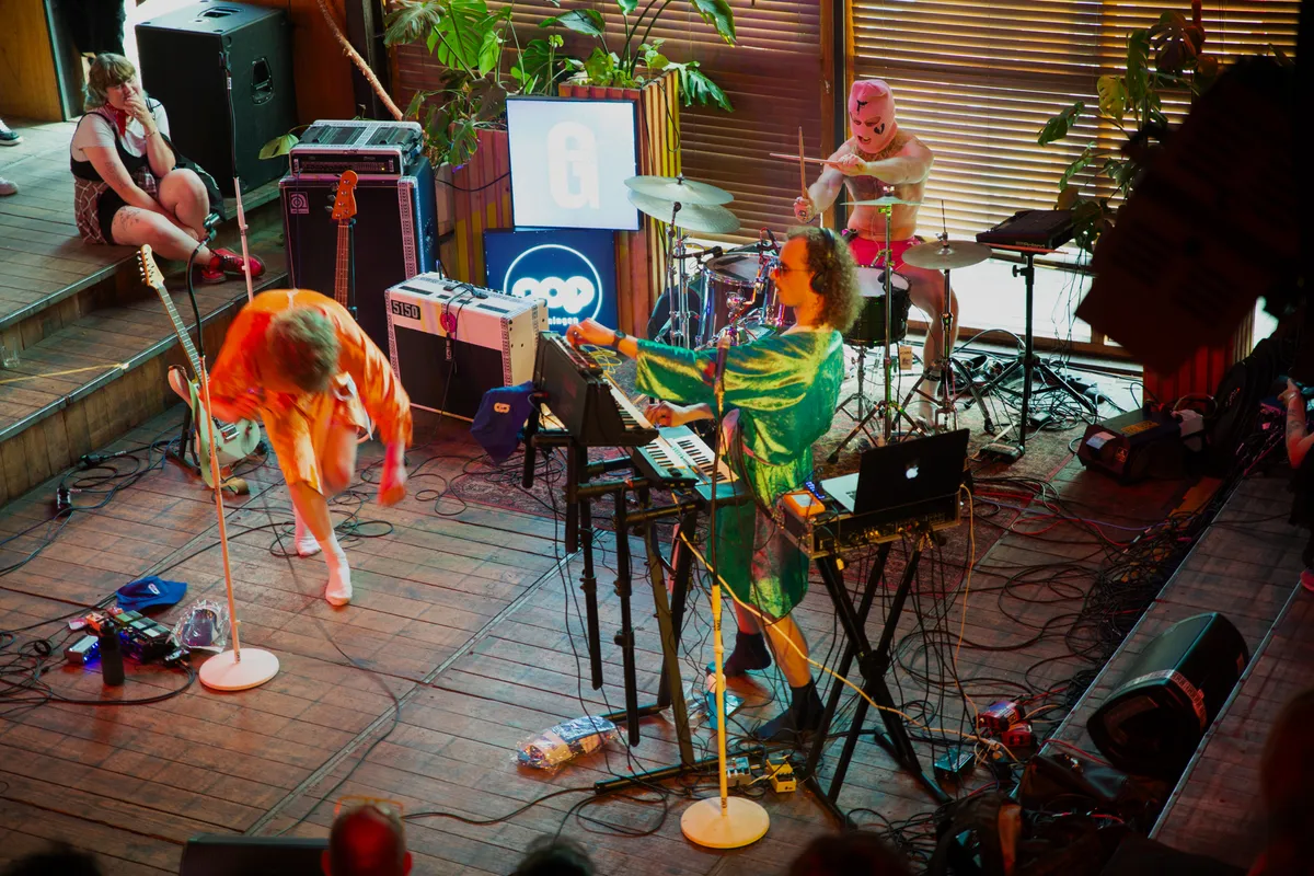 De avond wordt afgesloten door Stof, die in hun glimmende gekleurde badjassen het type gekke protestmuziek voortbrengen waar je als links mens eigenlijk nooit genoeg van hebt. Stof is niet bang om het te laten schuren, om te schreeuwen of te springen.