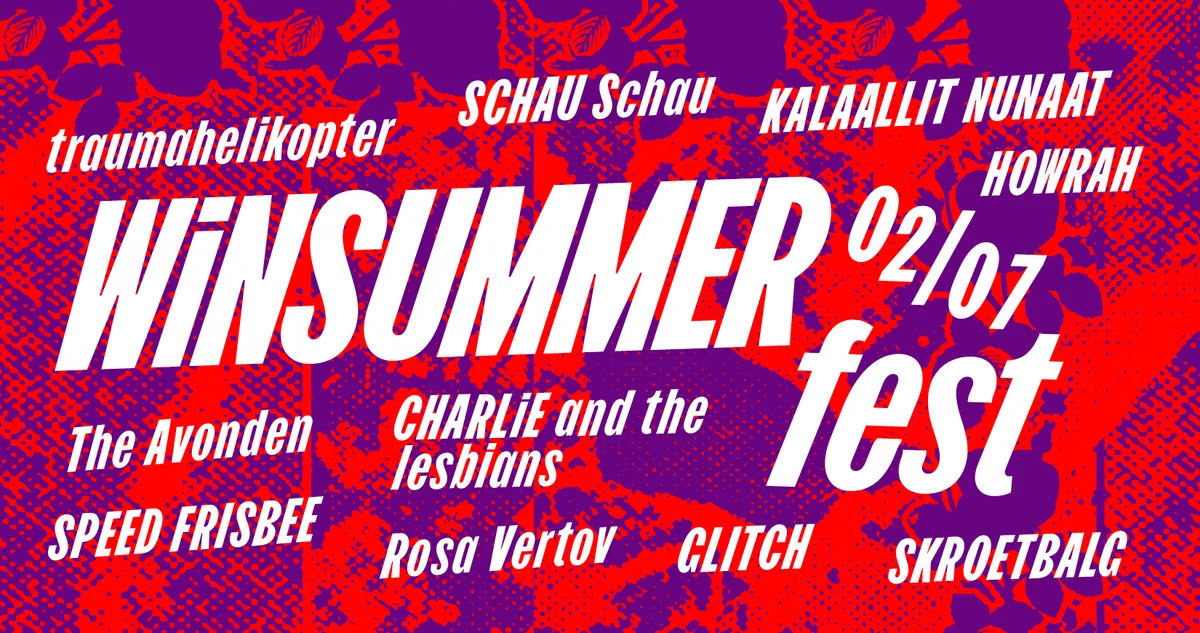 Omschrijving: In het centrum van Winsum vindt winSUMMERfest plaats. Tien bands op vier locaties. De avond begint om 19.00 in de Pluu en daarna wisselend ook op de andere plekken, zo kun je de hele avond tussen de kroegen heen en weer blijven lopen. Line-Up: Traumahelikopter, Schau Schau, Skroetbalg, Kaalallit Nunaat, Charlie & the lesbians, The Avonden, Rosa Vertov, Speed Frisbee, Glitch, Howrah