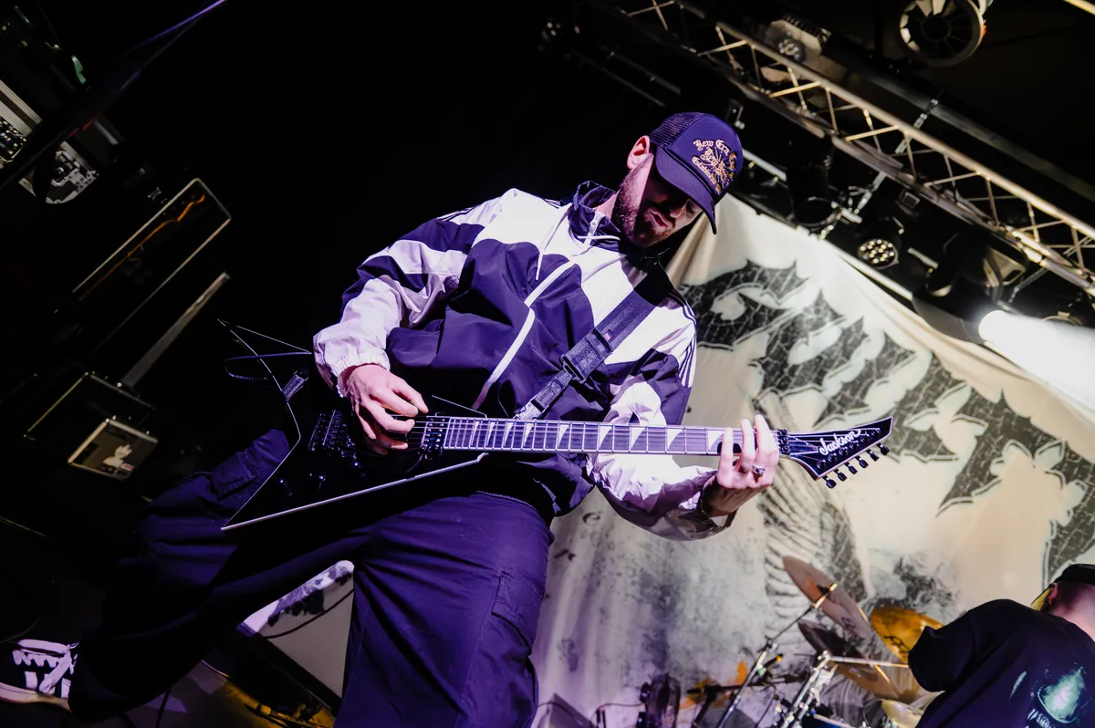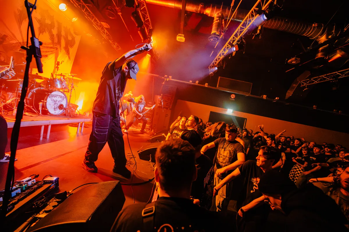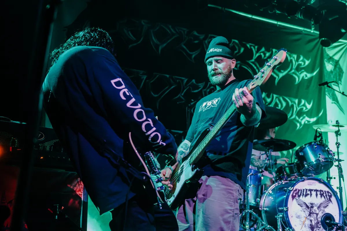 Als dan Guilt Trip het podium betreedt, is er geen twijfel mogelijk: dit is waarvoor het publiek komt. Met de intensiteit van een muzikale mokerslag zetten zij de toon. Zoals gebruikelijk bij hun optredens, breekt er direct chaos uit in de pit. Het publiek reageert als één op de energieke aanwijzingen van zanger Jay Valentine en van de gitarist Jak Maden, met uitbundig two-steppen, crowdsurfen en complete mosh-explosies als gevolg. Guilt Trip's strakke setlist houdt de energie constant hoog; de hele zaal lijkt de teksten uit volle borst mee te brullen, waarbij Jay en het publiek naadloos samenwerken in de ruige performance. Van de eerste noot tot de laatste kreet weten ze de zaal in een ijzeren greep te houden, en elke breakdown voelt als een gezamenlijke uitbarsting van energie.