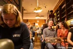 “Overigens, singer-songwriters zijn wel gewoon welkom. Voor boekingen kijk ik vooral naar artiesten die ik zelf heel inspirerend vind,” vult Niels aan. Bookstor is een ruimte die stilte afdwingt. Op een plek als Bookstor verklein je letterlijk de ruimte tussen artiest en publiek, dat geldt overigens ook in de muzikale zin. Je stript alles weg waar een artiest aan gewend is geraakt zoals de microfoon, de PA en het podium. Niels voegt toe: “Sommige artiesten zijn dan zelfs weer zenuwachtig, puur omdat die microfoon er niet meer staat.” De stoelen staan tot aan de knieën van de artiest. “Soms zet ik de stoelen zo dichtbij dat een artiest vraagt of die niet tien centimeter verder kunnen.”