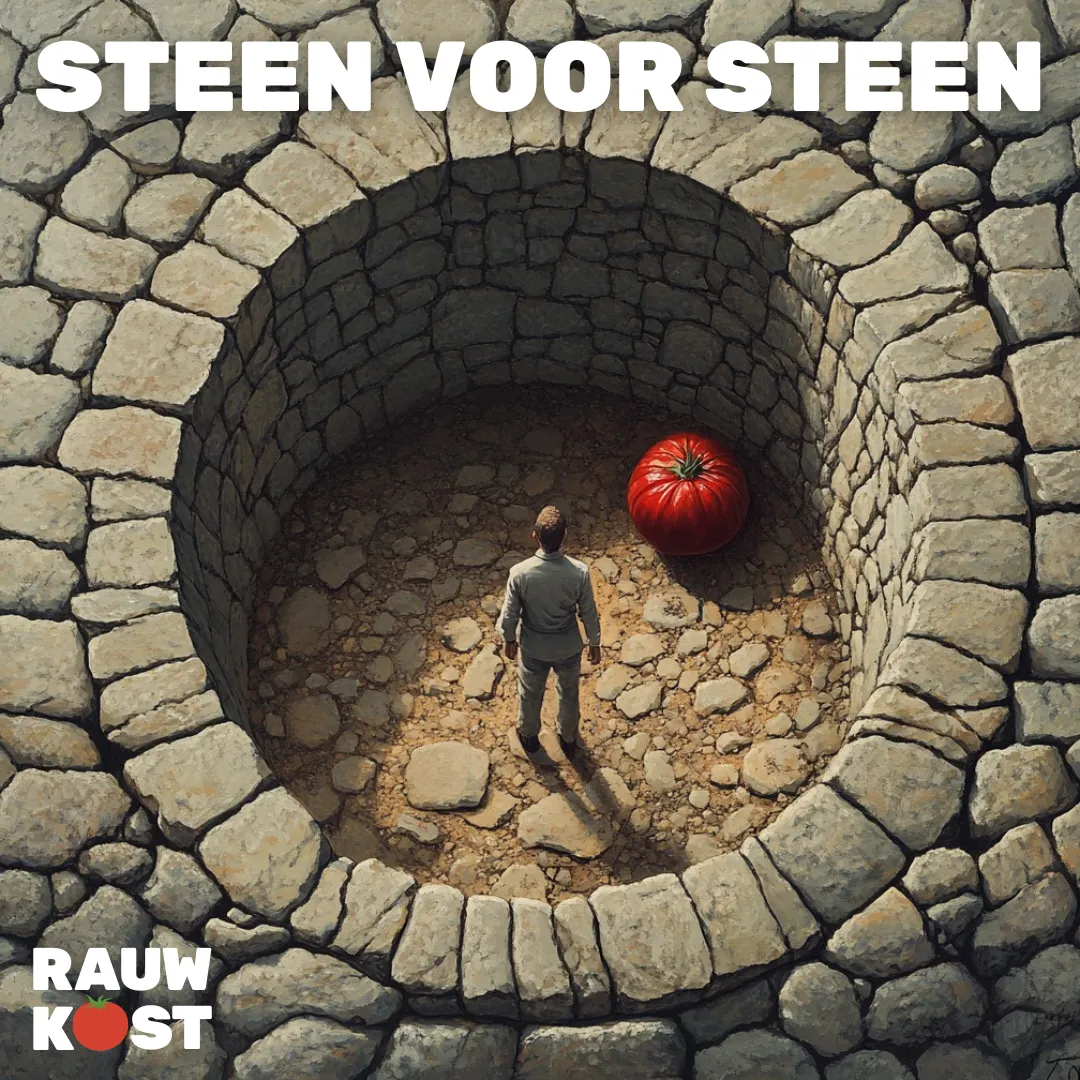 RAUWKOST! pakt lekker door! In 'Steen voor Steen' bezingt de band een tactiek om met moeilijke situaties om te gaan: een muur optrekken, steen voor steen. "Ik weet ook wel dat ik er niks mee kan, maar ik heb een zak cement en geen ander plan!"