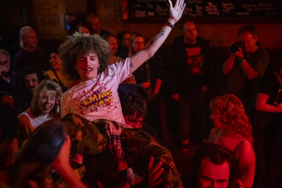 Nederlands, Engels en Spaans klinken binnen de nummers vrolijk door elkaar. Ruhwel trekt een man op het podium en doopt hem Junior Flyer door een stagedive en crowdsurf te organiseren. Er wordt een biertje besteld voor de Junior Flyer, terwijl het publiek hem naar de bar brengt en terug naar Ruhwel met een verse pint. Proost! Maar wij moeten door.