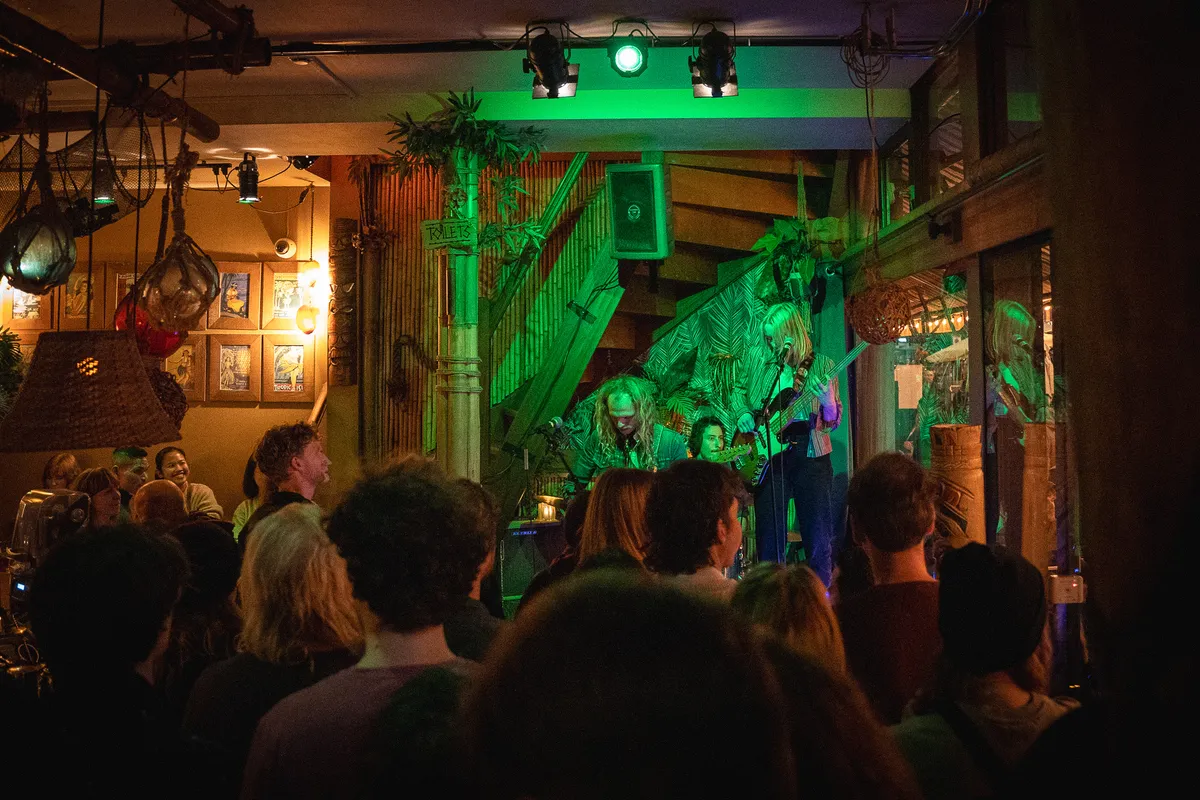 Bij Cocobolo in Vavoom is het stampensvol en van wat we van buiten meekrijgen, is dat volledig terecht. Met name het groovende basspel van Hilde Luytjes brengt ons aan de andere kant van het raam in beweging, maar zij doet het natuurlijk niet alleen. Cocobolo is funky, loungy en exotisch, en als er één ding is wat we hebben geleerd, is het dat we de volgende keer eerder moeten zijn.