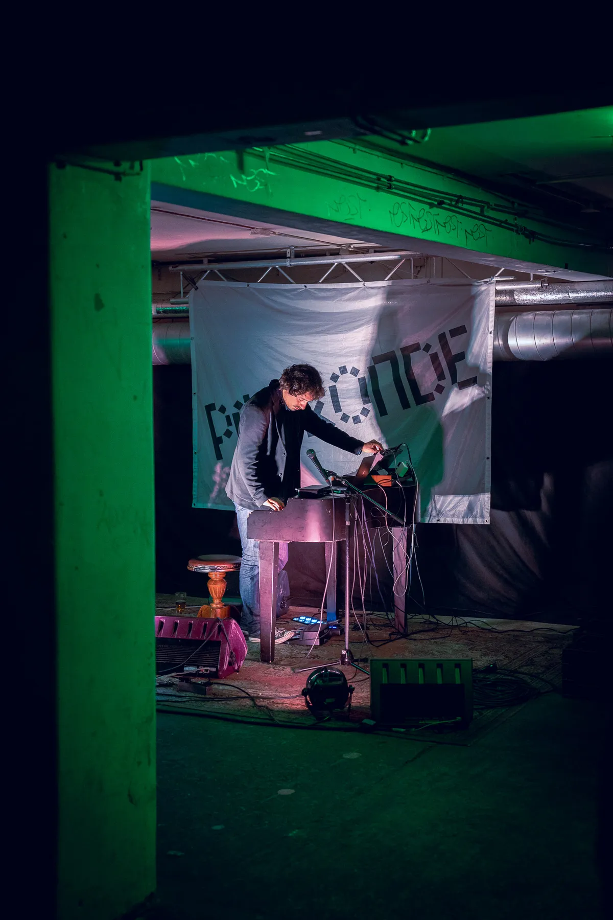 Het leuke van de Popronde - als je echt een rondje doet - is niet alleen het ontdekken van muziek. Ook de locaties zijn gedeeltelijk een ontdekking. Zo staan plekken als The Social Hub en Pulchri Studio niet noodzakelijk scherp op het netvlies van het gemiddelde Grote Markt-publiek, net als misschien The Grey Space in the Middle. Hoewel bezoekers van Sniester, Rewire of Grauzone de kelder waar XA4 speelt vast al kennen, zou ook het bredere publiek hier eens lamgs moeten gaan: The Grey Space is een heerlijke plek waar kunst en muziek samenkomen op betonnen vloeren. Het is er minimalistisch, ook voor XA4. Slechst één ledlamp is gericht op de artiest, met zijn piano staat op een moffelig kleed als enige sier. Op de elektrische piano staat een klein keyboard, een laptop en een mengpaneel.