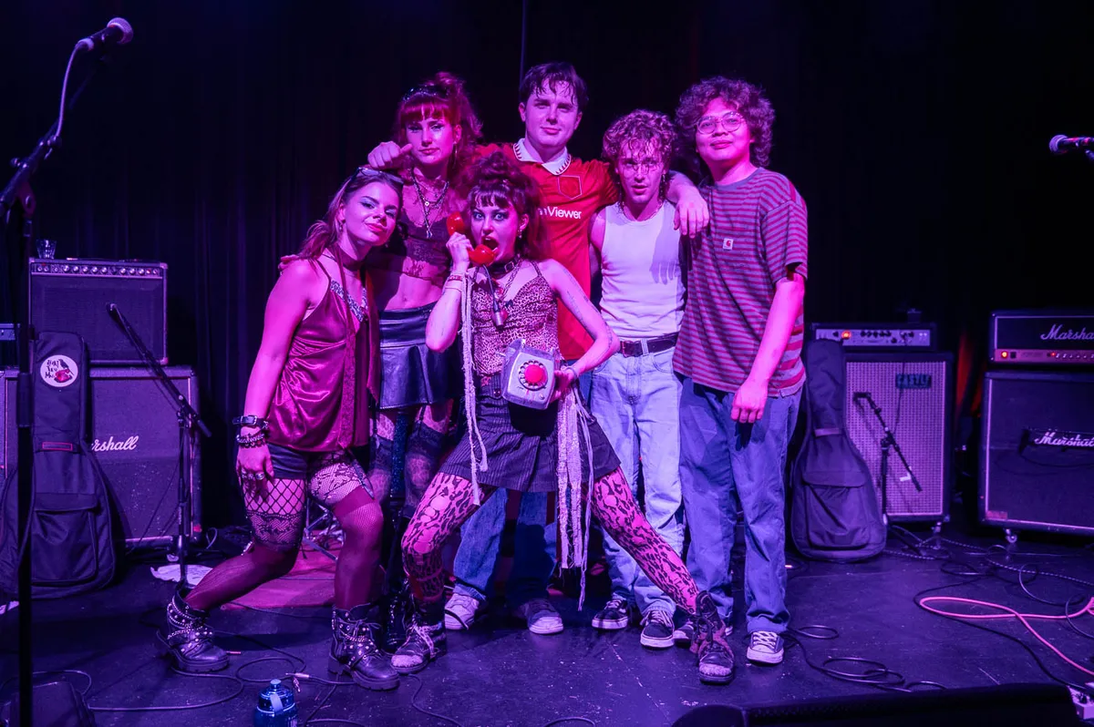 De afsluiter van de avond is Chattermag, een zeskoppige band met een even bonte samenstelling als hun muziek. Zangeres Kate, gitariste Jana en toetseniste Mira matchen in pantykousen, panterprint en warrige jaren ’80-haardossen. Gitarist Johann lijkt uit de jaren ’70 gestapt, bassist Oliver draagt nonchalant een voetbalshirt, en drummer Konstandinos oogt als James Dean in Rebel Without a Cause.