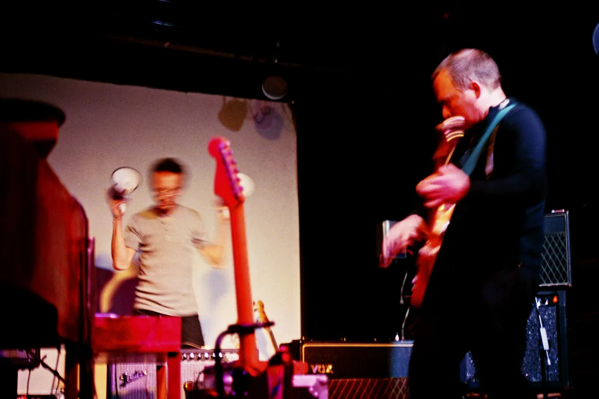 Bhajan Bhoy trapt de avond af. Met een geheimzinnig herhalend akkoordenschema op de gitaar en een looperpedaal zet hij een dronende spacerockwereld neer, bijgekleurd door een nostalgische videocollage van spelende kinderen en danseressen die zich uitkleden. Zo nu en dan pakt Ajay de bas en draait hij de knoppen van zijn synthesizer bij, en verandert zo geleidelijk het muzikale landschap van dichte bossen vol gierende boventonen naar meanderende rivierdelta’s van reverb en delay, als een dronevlucht over de tropen. Muziek om de ogen bij te sluiten en weg te dromen, ware het niet dat de videoprojecties je langzaam beginnen te vervreemden en je je realiseert dat die ogenschijnlijk lieflijke filmpjes worden afgewisseld door beelden van afkickende heroïneverslaafden en een messenwerpsessie met jonge kinderen. Om vervolgens weer plaats te maken voor een kat die zijn intrek in een nieuwe kartonnen doos maakt. Een zorgvuldig geconstrueerd stukje duistere humor, en Ajay lacht het laatst.