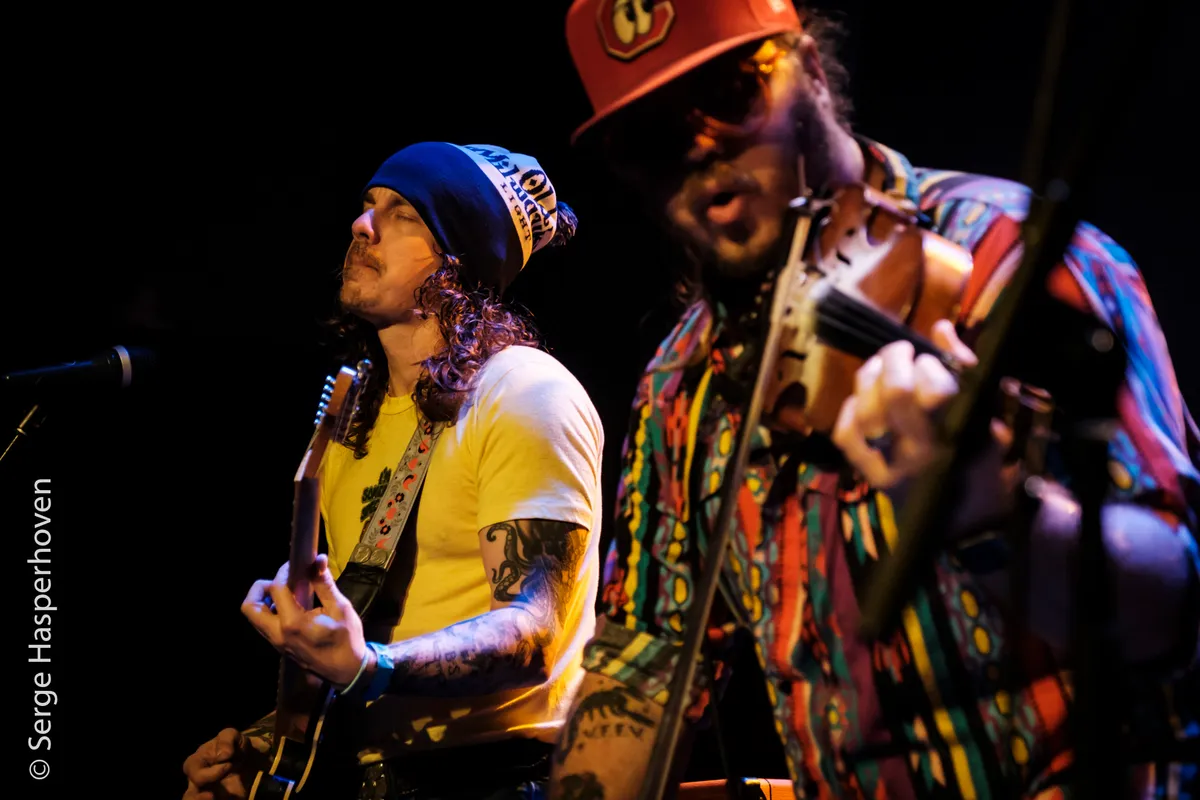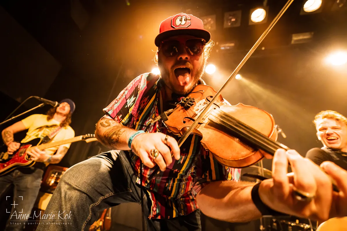 Daarnaast zien we nog de getatoeerde trompettist, de hardcorepunk bassist, en de superstrakke drummer wiens kapsel rechtstreeks uit de hoogtijdagen van 2008 emo komen. Toch valt alles in het niets bij de hyperactieve violist die alles meezingt alsof zijn leven er vanaf hangt, ook al heeft hij geen microfoon. Het enthousiasme zorgt er dan ook voor dat iedereen het nummer ‘Smoking Cigarettes in the Rain’ meezingt, zonder de woorden vooraf te kennen.