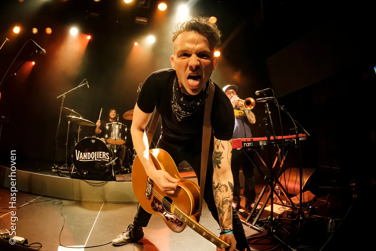 Een beetje teleurgesteld lopen we de zaal uit op weg naar de kleine zaal. Daar laten de Vandoliers uit Texas weten hoe ze een feestje bouwen. Is het country? Is het ska? Is het poppunk met akoestische gitaar? Wie naar deze energieke en opbeurende band luistert, denkt misschien aan de folkrock van Flogging Molly.