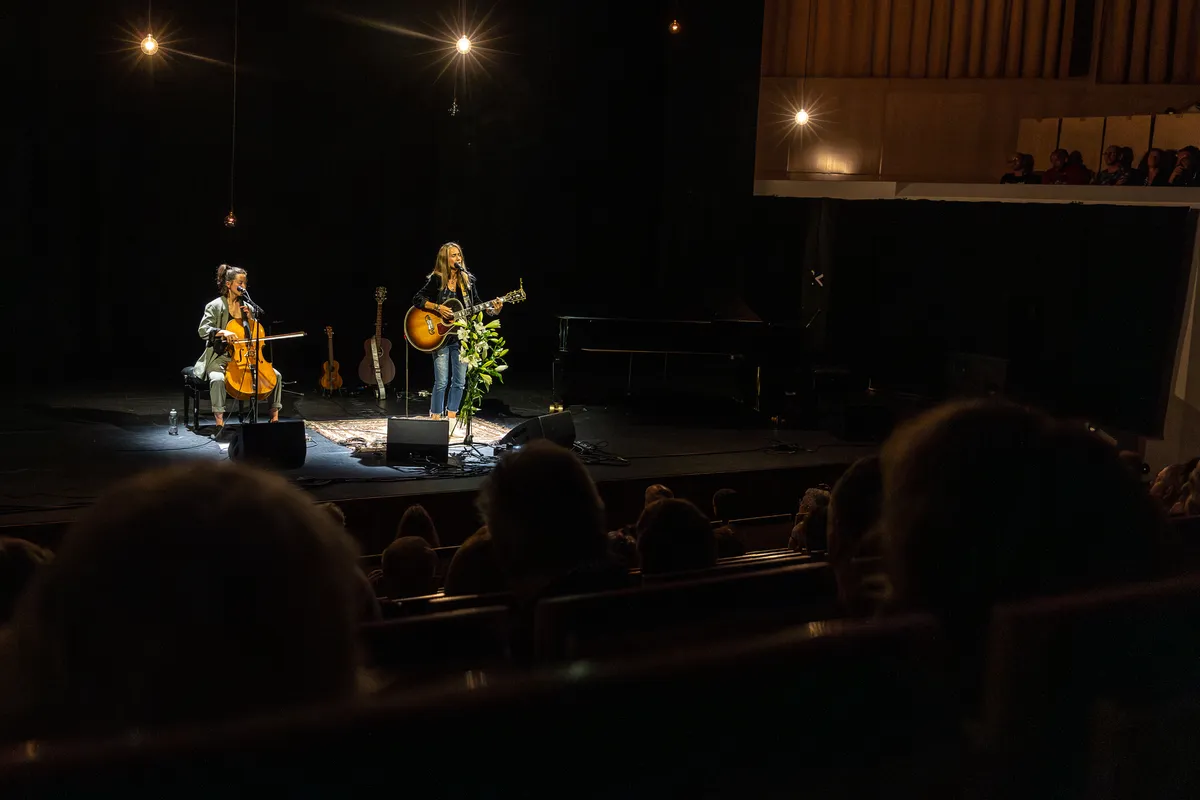 De avond staat in het teken van Heather Nova’s meest recente album Other Shores, een album dat volledig uit covers bestaat. Maar stiekem is het ook een soort reprise van Pearl, het album waarmee ze in 2019 haar 25-jarig jubileum vierde. Dat jubileum viel helaas grotendeels in het water door corona-perikelen. Daarom krijgen we vanavond een fraaie dwarsdoorsnee van haar oeuvre met hier een daar een cover. Zoals ‘Jealous Guy’ van John Lennon en ‘I am on Fire’ van Bruce Springsteen. Maar credits wie credits toekomt. Heather Nova zit helemaal niet verlegen om covers, daarvoor is haar eigen materiaal te sterk. Zoals bijvoorbeeld ‘Island’, ‘Winterblue’, ‘Waiting’ en ‘Maybe An Angel’. Dat blijkt eens temeer in deze intieme setting waarbij ze zichzelf begeleid op akoestische gitaar en piano, een enkele keer aangevuld met Midori’s weemoedige celloklanken. In zo’n kleine setting komt haar stem het mooist tot z’n recht.
