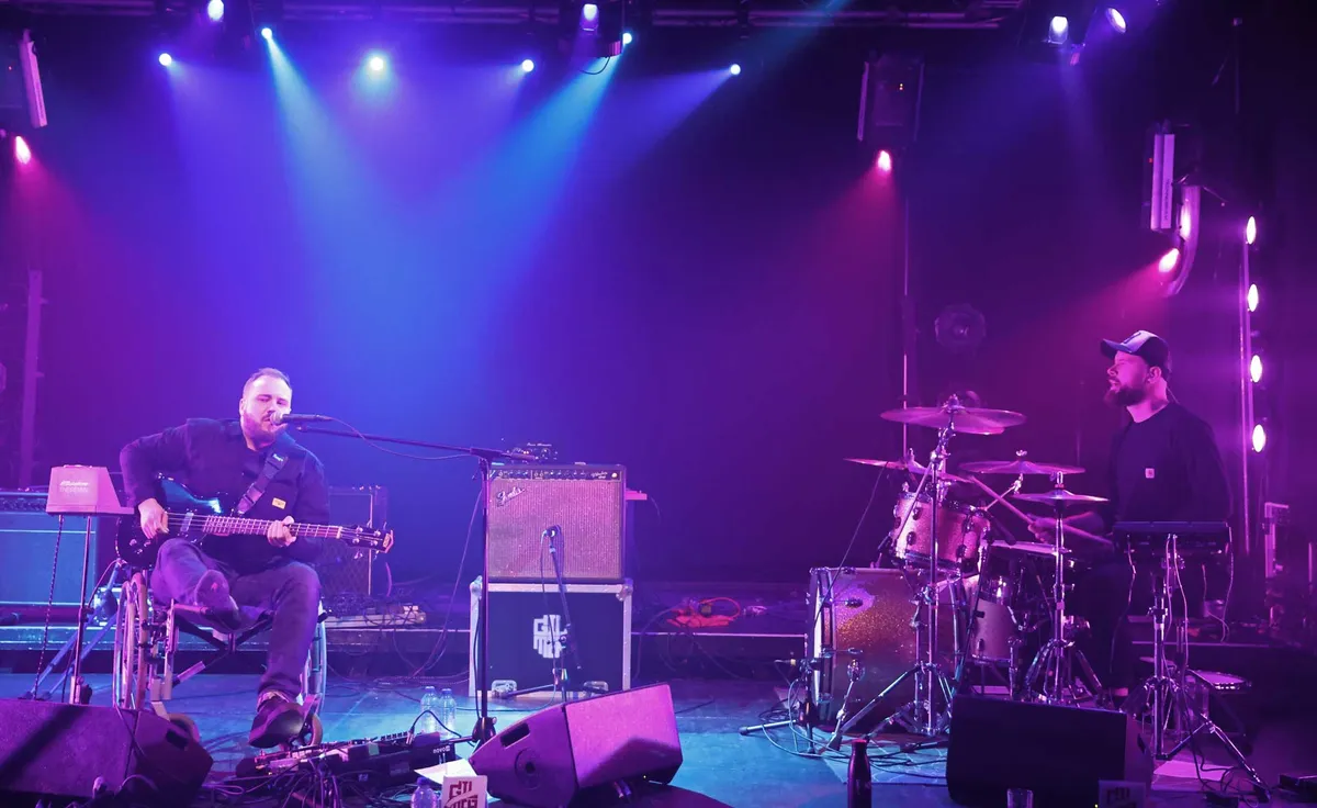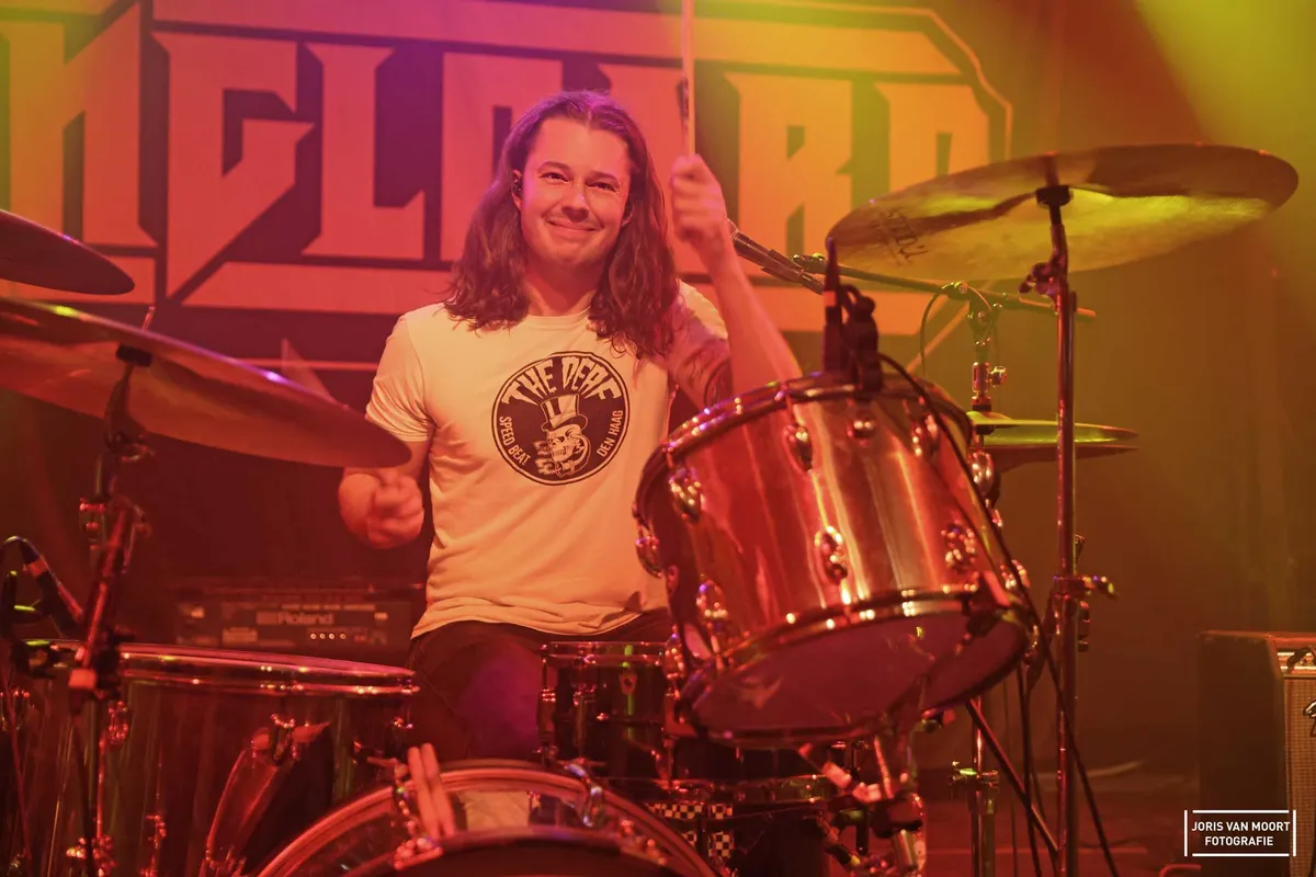 Gilmer, met bassist/zanger Emiel Gilijamse en drummer/zanger Lex Folmer, opent Heavywave met hun ‘Watch me’ en zet daarbij gelijk de toon voor deze avond. Stevig, melodieus en met een rauw randje. Zanger Emiel Gilijamse, afkomstig uit Renesse, heeft net zijn voet uit het gips- 7 weken geleden gebroken bij een val van het keldertrapje- maar wilde koste wat kost spelen op zijn ‘homeground.’ In zijn rolstoel geeft hij álles en dat van die voet vergeet hij bijna. Drummer Lex Folmer debuteerde twintig jaar geleden al op dit podium. Het publiek moet nog wat opwarmen, maar wordt meegenomen in het ‘treintje’ van bas en drums. Lekkere riffjes met een stonerachtige knipoog en ja: twee man is een band!