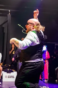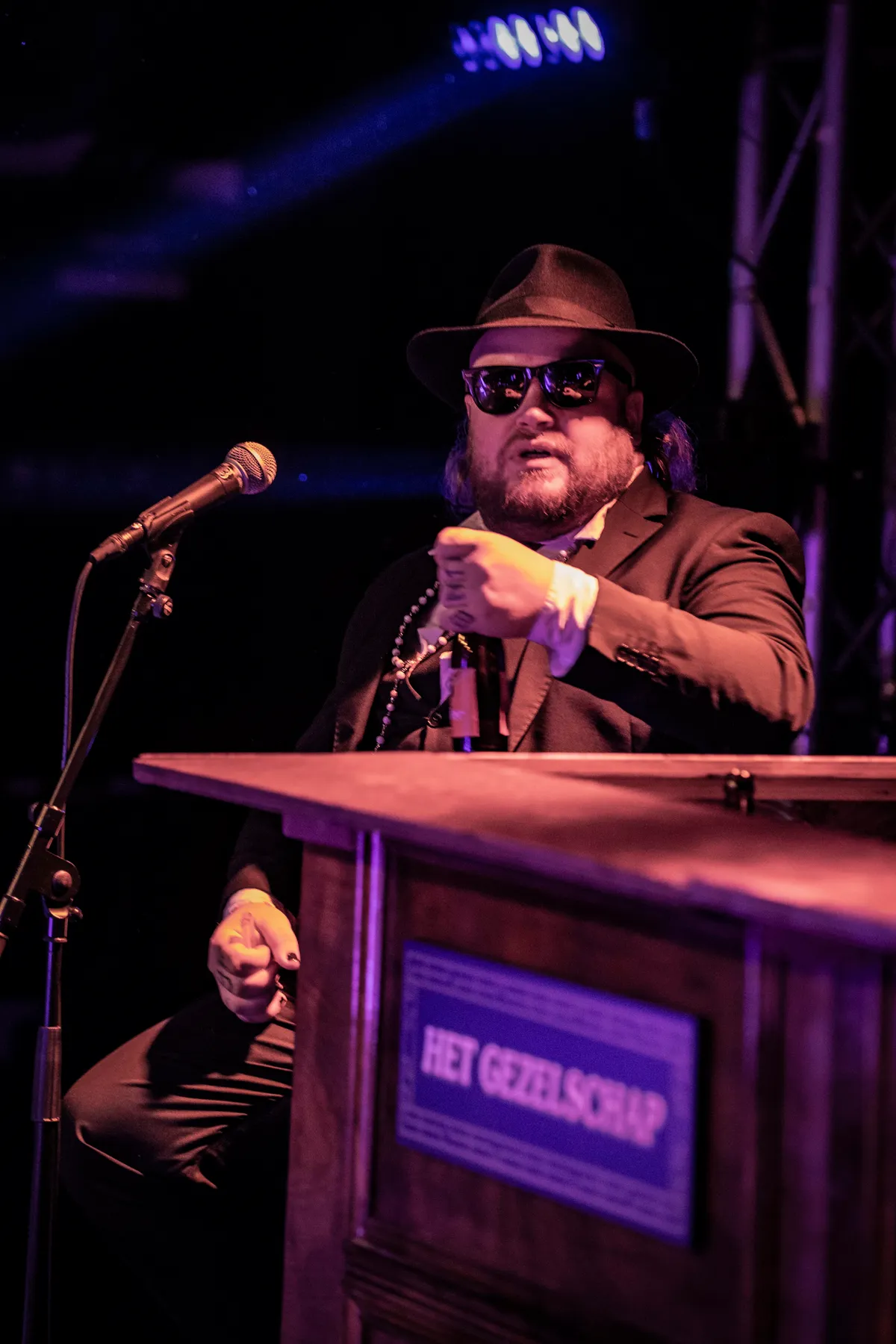 Maar wanneer Juno na een aantal nummers naar voren loopt en in de spotlight gaat staan, gebeurt er iets bijzonders. Anders dan bij voorgaande optredens doet het hele Gezelschap een stapje terug, het licht op het podium wordt gedimd, en wat blijft er over? Eén trotse Dordtenaar, compleet in zijn element. De excentrieke voordracht van Juno’s gedicht is de kers op de taart van zijn Nachtburgemeesterschap. Het publiek is duidelijk onder de indruk want er volgt een korte stilte… maar dan barst iedereen uit in luid geklap, gejuich en positief gefluit!