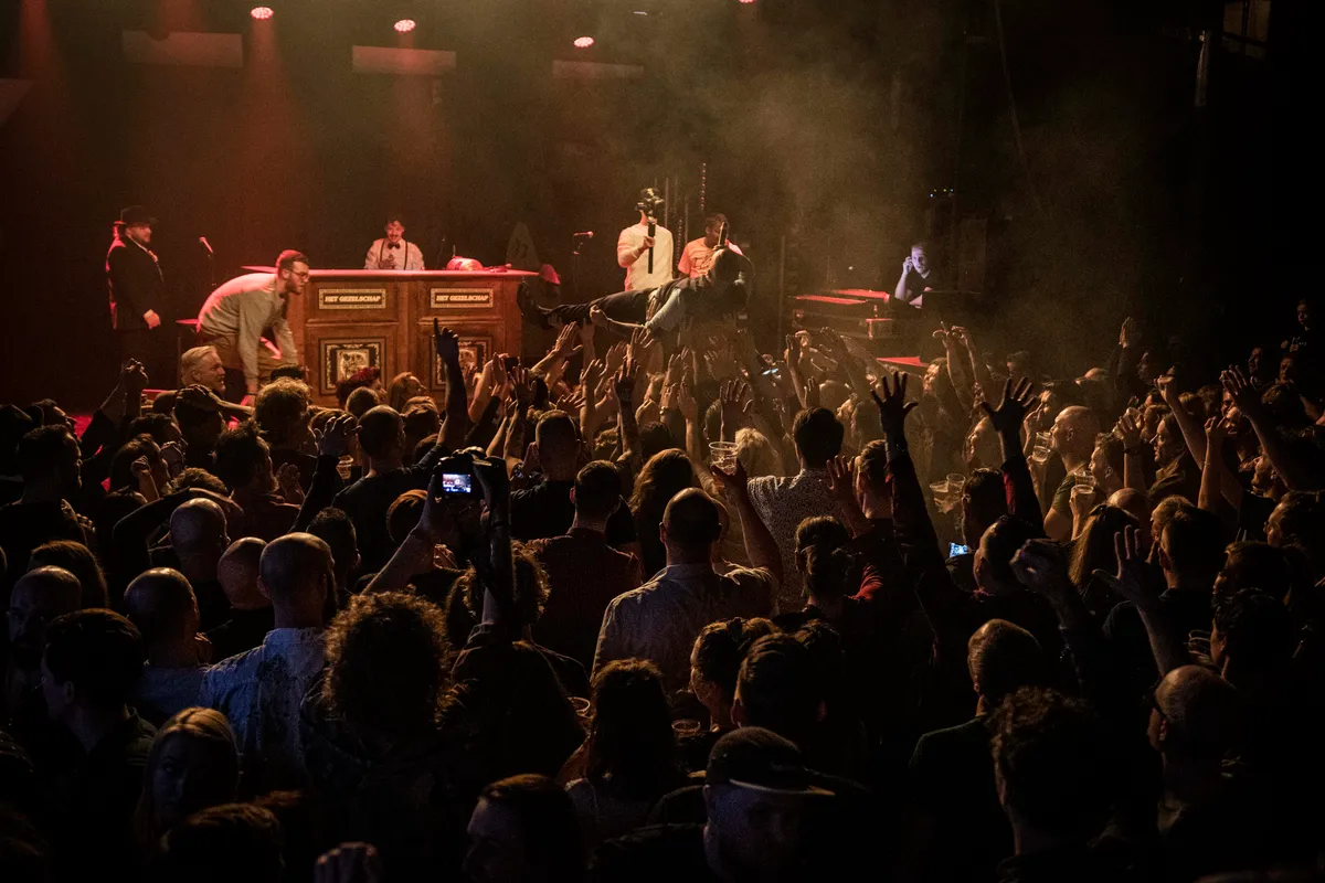 Vanaf dat moment explodeert de Dordtse zaal van de energie. De opkomst van Snipe (Sickfam) en Sadé Adu (o.a. popronde 2015) doen de sfeer extra goed. Disco Snipe maakt een sprongetje, doet zijn moonwalk en hyped de tent op. Een mooi moment is het gigantische applaus dat producer Deon krijgt als hij op handen door het publiek gedragen wordt. De jongen die de meesterlijk beats maakt, maar niet graag in de spotlights staat.
