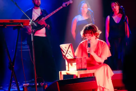 Hoewel zij in het echt als Puck van Biemen door het leven gaat, gebruikt ze haar tweede naam Cézanne om haar muziek onder de aandacht te brengen. Zo ook op de avond van haar optreden die ze 21 juni heeft gegeven in het Hilversumse De Vorstin. Niet helemaal vreemd, want Cézanne is opgegroeid in de plaats waar bijna alle omroepen zijn gevestigd.