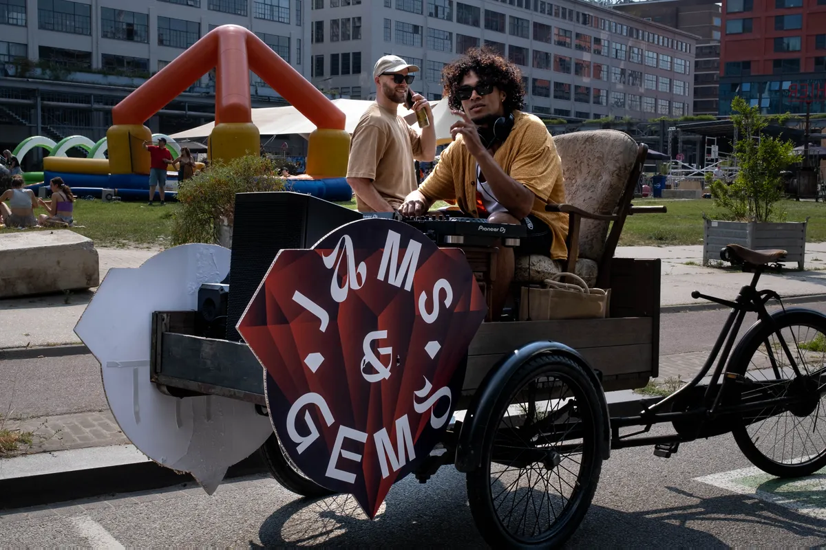 Ook de promotie van het festival wordt zelf geregeld. Daarvoor hebben de jongens een slim plan bedacht. Ze zetten een DJ-booth op een bakfiets en fietsten daarmee rondjes door de stad om de aandacht te trekken.