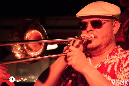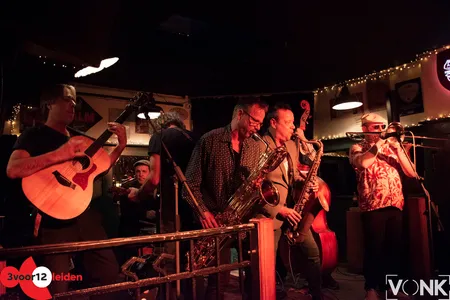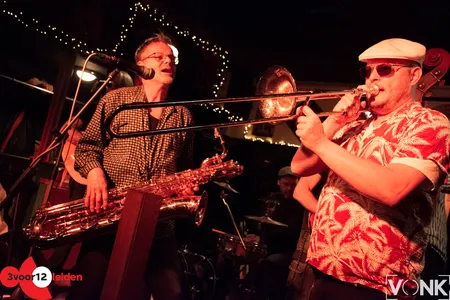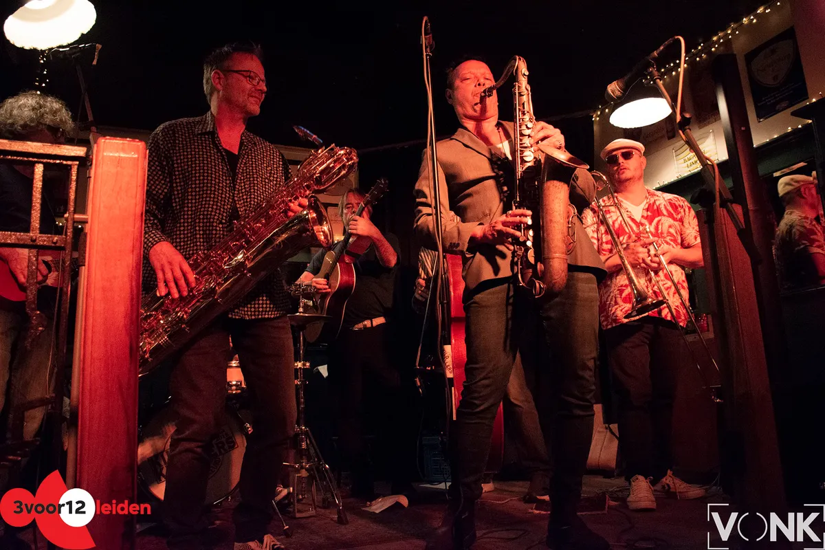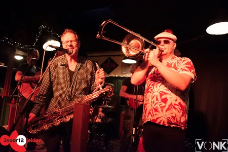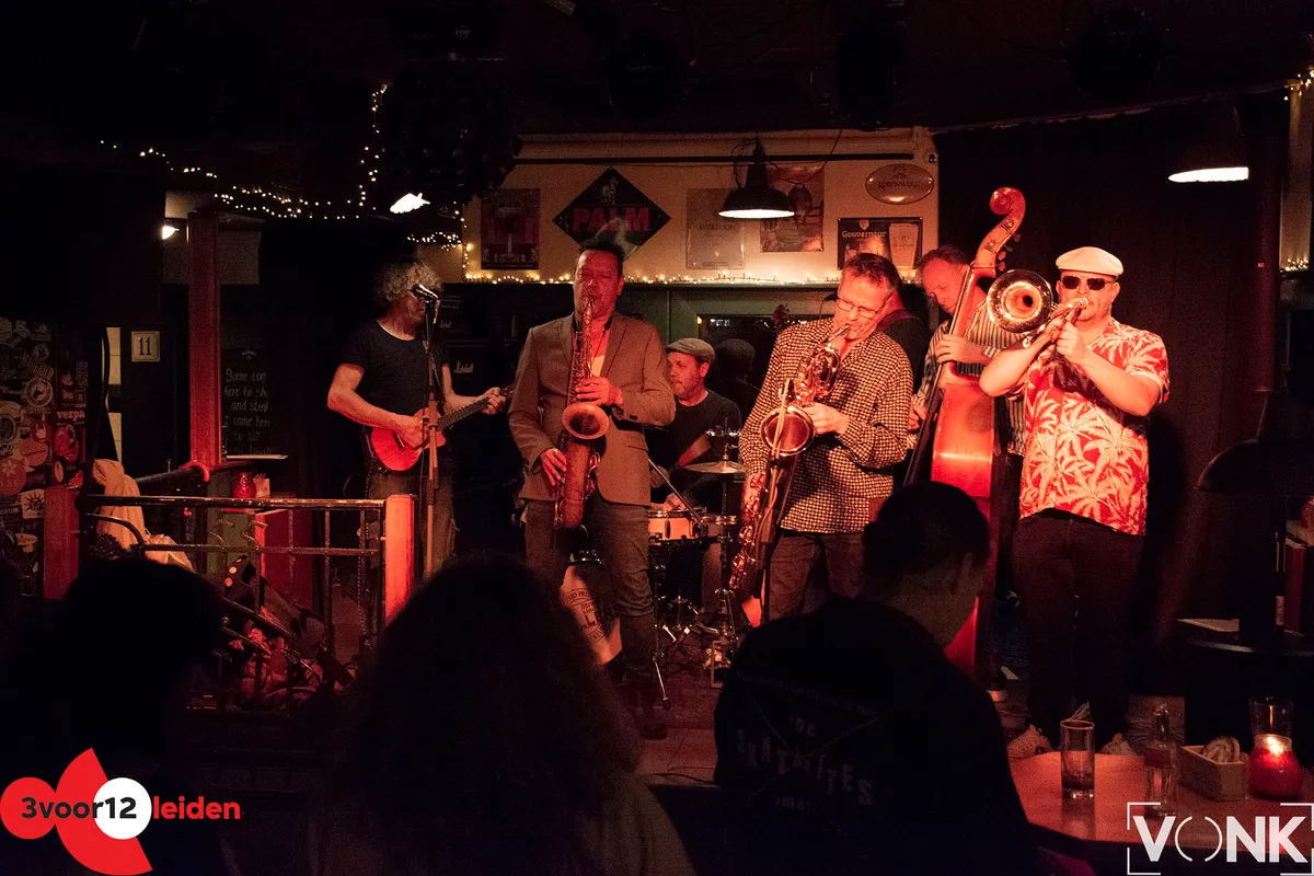 Buiten is het een doodgewone zondagmiddag, in De Veste is het een feestje. De zevenkoppige jonge hond die 'Kiloknallers' heet, mag los. Hij wiebelt, draait, blaast, slaat, tokkelt en kwispelt. Het publiek is licht ontvlambaar en weet het ook: ska never gets old. Een fotoverslag.