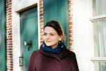 Zij fietst door de stad om mensen te helpen. Krankzinnig in deze situatie.