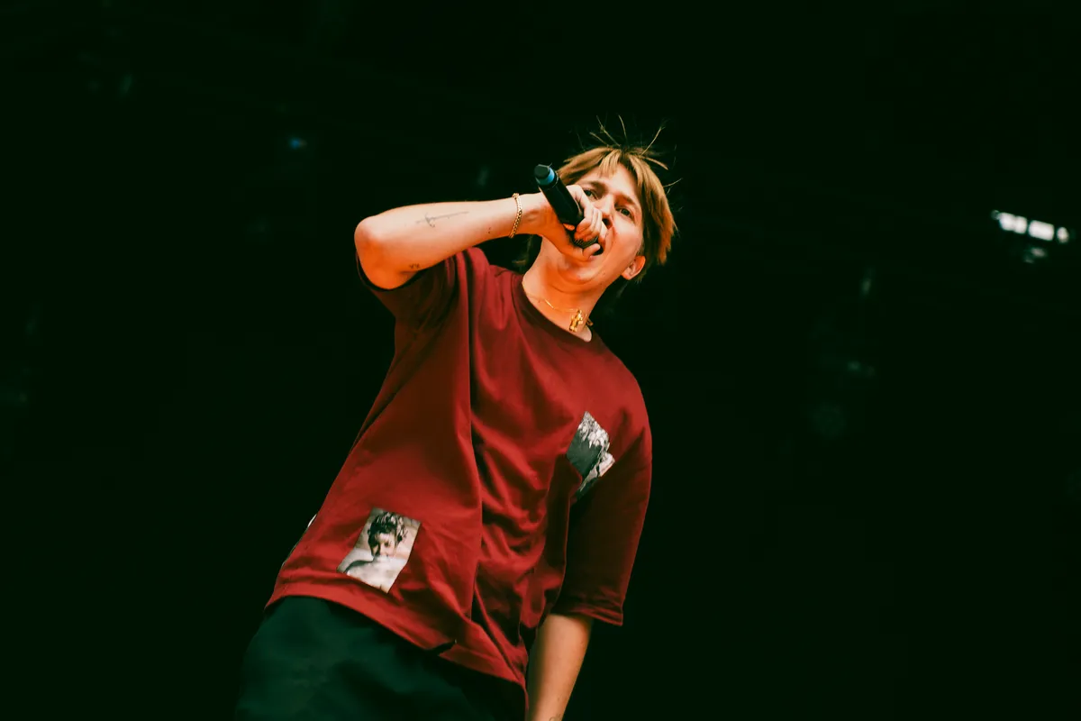 Wie twee jaar geleden bij de show van Tilburger/Veghelnaar Q’n op Het Moment was weet: vandaag wordt een hele andere show. Toen solo en laat op de avond; nu met band (een primeur op het festival) en in de middag. Natuurlijk is hij nog altijd die sadboi from the south, met zijn introspectieve en goudeerlijke lyrics over heartbreak en (het overwinnen van) depressie, maar zijn songs krijgen in deze show extra gelaagdheid. Zijn stem is niet altijd zuiver, maar wie maalt daarom als je zo oprecht bent? In een set die voelt als een intiem dagboek vol trapbeats is er ook ruimte voor een moshpit, en ja, daar mag gewoon in gehuild worden.