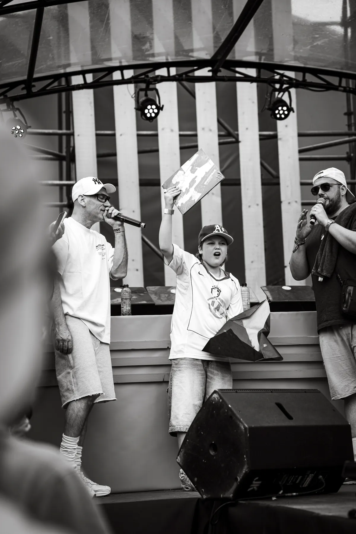 We nemen een kijkje bij een van de drie vrouwen die hier vandaag op de line-up staan. Crystal Chanay betreedt het podium van de Hall of Fame in roze laarzen en een kanten pakje, ze benoemt dat ze optreden best spannend vind, maar spit haar bars ondertussen als een echte veteraan. Die kwetsbaarheid siert haar. Halverwege joint Ella John het podium, die we later ook nog op dit podium zien, en samen brengen ze ‘HoodBi$h’ alsof ze het anthem van de dag afleveren. Van urban clubsound tot keiharde trapbeats, Crystal bewijst hier dat ze meer is dan alleen glitter en grime.