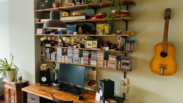 “Voor mij is dat om te beginnen de muziek die er al is. Ik heb mijn cd-collectie boven mijn bureau en het is een fijn idee om iets te proberen te maken dat daarbij hoort. Op de rest van de planken staat - naast allerlei dingen die geluid kunnen maken - een collectie van over de jaren verzamelde beelden en tokens. Ik denk dat dat iets zegt over hoe ik muziek benader en dat dat is wat ik in de mooiste albums waardeer, het persoonlijke.