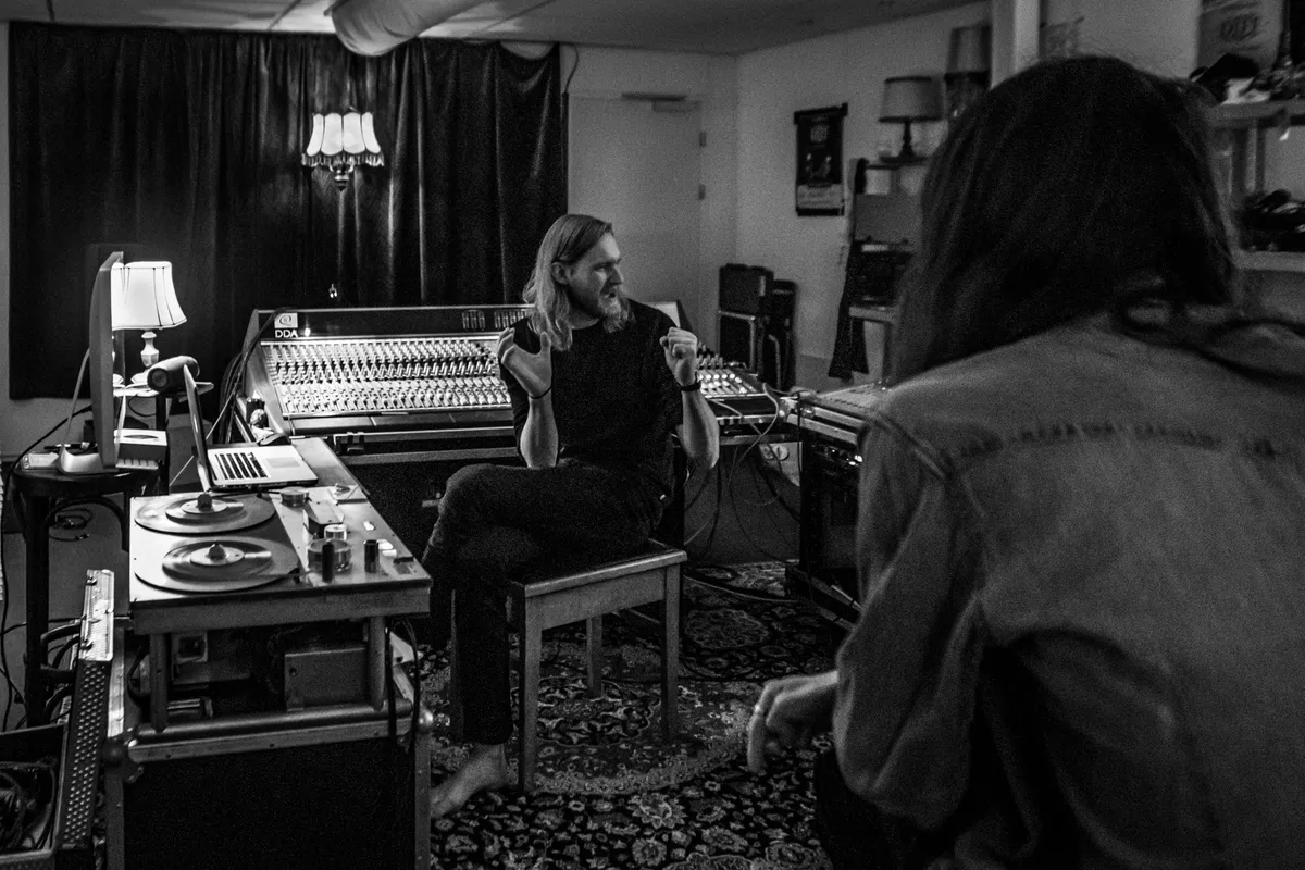 Bonne: "Ze zijn naar me toegekomen met: 'we willen een plaat opnemen, met een duidelijke sound, Led Zeppeling-achtig, roomy, open en groots. Met z'n drieen'. Mijn vertrekpunt is geweest: hoe denk ik dat die sound gemaakt kan worden, met de instrumenten die zij bespelen, met de muziek die ze maken? De muziek vraagt hierbij gewoon om een Led Zeppelin-achtige aanpak. Mijn rol was onder andere die van co-producent: past de partij in hebt nummer, past de sound binnen het geheel. Hoe zorg je dat een dikke riff niet wegvalt in crashende bekkens. Dus dan geef ik suggesties om het arrangement iets aan te pakken. Toen ze in de studio kwamen hadden ze precies in hun hoofd hoe ze het wilden hebben. Dan denk je bij het spelen voortdurend: 'Klinkt het wel zoals we het bedacht hadden?'. Voor je het weet ben je de live energie kwijt. Bij dit project was het belangrijk om de band te laten vergeten dat ik ze aan het opnemen was. En om ze op scherp te zetten heb ik ze af en toe boos gemaakt."