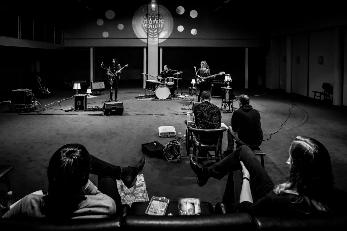 Electric Hollers heeft het afgelopen halfjaar weer in de studio doorgebracht. De band heeft het tweede album 'Electric Hollers' gemaakt, na voorganger 'Rise'. Ze zijn nu druk bezig met de voorbereidingen voor de release aanstaande vrijdag 28 februari. De generale repetitie vindt plaats in het oude postsorteercentrum in Leeuwarden, daar waar ook bij Studio Bonne het album is opgenomen. In september 2019 beginnen ze met de eerste opnames en fotograaf Rick Slagter maakte daar een fotoserie van. Voorafgaand aan de generale repetitie voor de release, kijkt hij aan de hand van een aantal foto’s met de band terug op de beginperiode. Het gesprek met gitarist Tim Birkenholz, drummer Max Mollema, bassist Inge de Vries en studiowhizzkid Bonne van der Wal gaat over sound en live opnemen en de keuzes die zijn gemaakt.