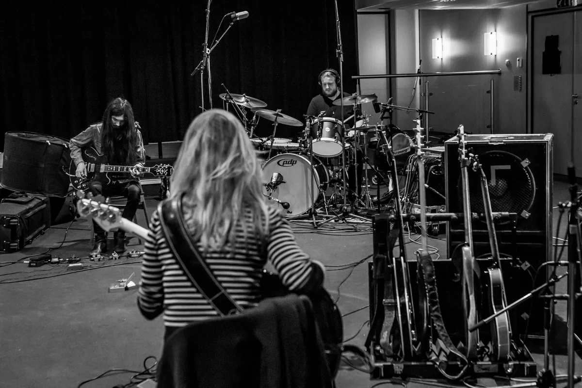 Tim: “Een van de criteria bij het zoeken naar een studio was dat we de versterkers luid konden zetten, dat Max zoveel geluid kon maken als nodig was. Deze ruimte was wat we zochten. Het was wel even wennen, spelen voor opnames in een soort live opstelling zonder publiek. Gelukkig maakt het voor ons niet zo heel veel uit of we voor een publiek staan of niet. Wij genieten van het spelen, ook bij repetities spelen we vanuit het hart.”