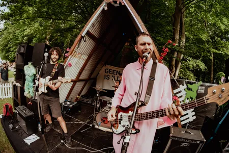 TAXITAXI is na Tijger Tijger de tweede epizeuxis-act van de dag. En voor de verdwaalde bezoeker die per toeval bij P2 is uitgekomen en geen idee heeft wie die flamboyante gasten op het podium zijn, hebben ze meteen een muzikale oplossing. Met hun eigen TAXITAXI-hymne - wat vooral neerkomt op heel vaak hun bandnaam blèren onder een catchy punkriffje - zetten ze het publiek meteen in de startblokken. Dit zijn gasten die precies weten waar ze mee bezig zijn.