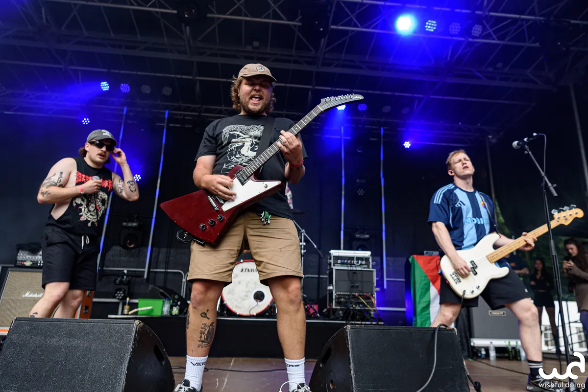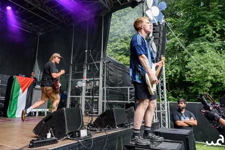 Er staat vandaag veel punk op de podia, maar Hard Voor Weinig is de rauwste en meest politiek geëngageerde act van het stel (redacteursnoot: Bas was niet bij State Power). De sfeer is compleet met een knus podium met zelfgemaakte decoratie, keffiyeh op de geluidsbox, een soundcheck die nooit helemaal eindigt en een publiek dat danst alsof ze graag een arbeidsongeschiktheidsuitkering willen bemachtigen. Onze fotografen riskeren met bravoure de potige moshpit en terwijl het trio brult over politiegeweld, voeren de fans wat directe actie op elkaar uit. Slamdansen is volgens de huisregels van Werfpop in de ban, maar er vallen altijd mazen te vinden om alsnog huid en haar te riskeren: slinger je maat als een strijdvlegel in de rondte en zie hoe je plotseling de ruimte hebt om te dansen!