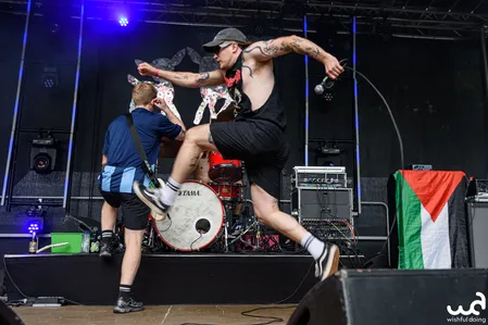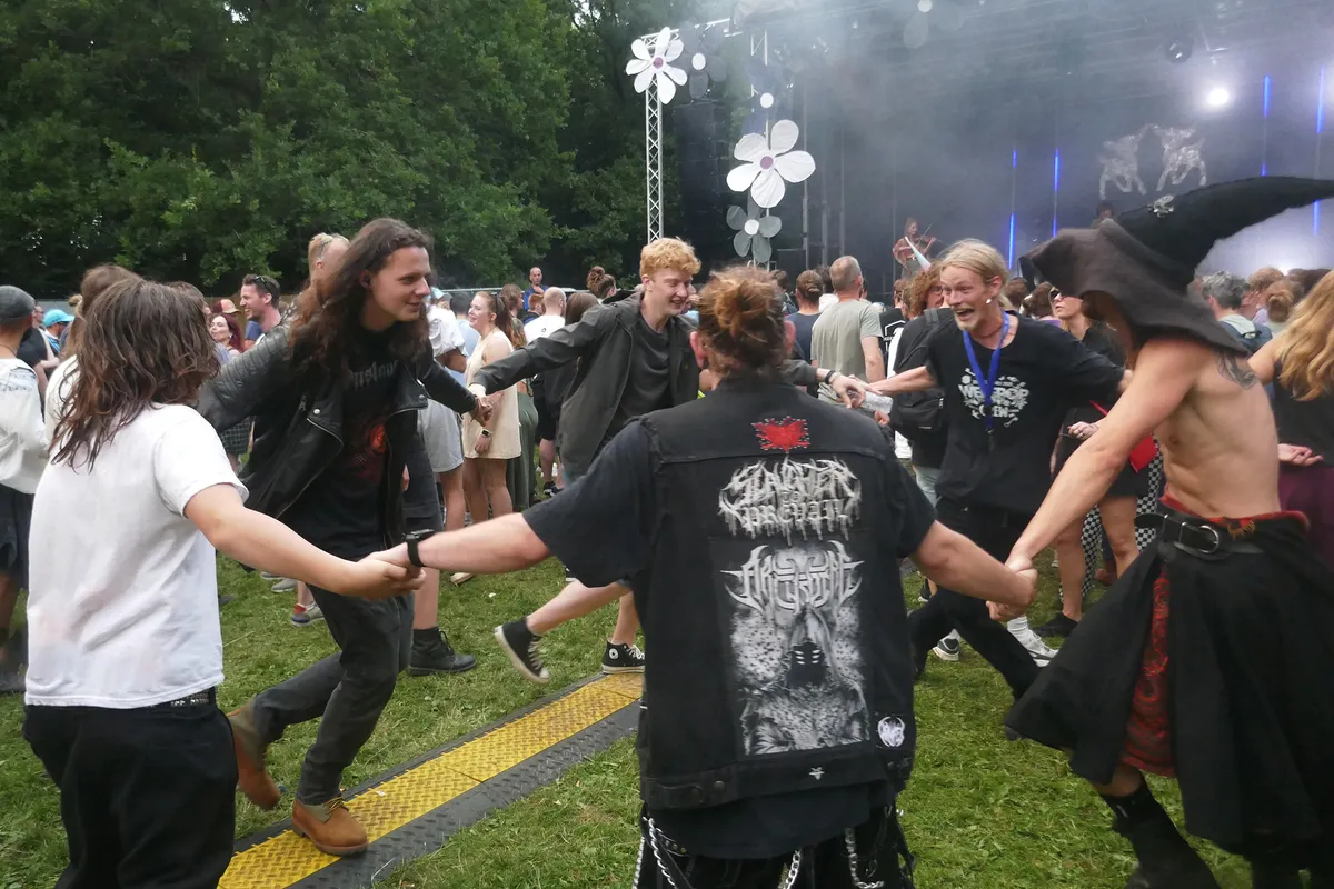 De Leidse hardcore punk met hart richt ook nog even de pijlen op Forum voor Democratie-leider Thierry Baudet met 'Boreal World' (onze rechtenfaculteit is verantwoordelijk voor een hele horde extreemrechtse politici) terwijl de pitters inmiddels al paardjerijdend een soort steekspel uitvoeren, en voor het brute 'Never Again' is er even een check wie er in het publiek allemaal pro-Palestina kleding aanheeft (er is één dame met een relevant shirt). Volgende keer een vlag meenemen, mits ik de hoofdredacteur zover kan krijgen dat er een potje voor gevarentoeslag komt.