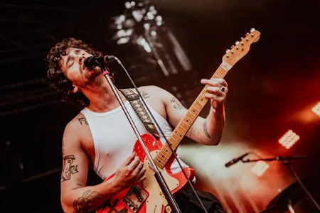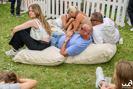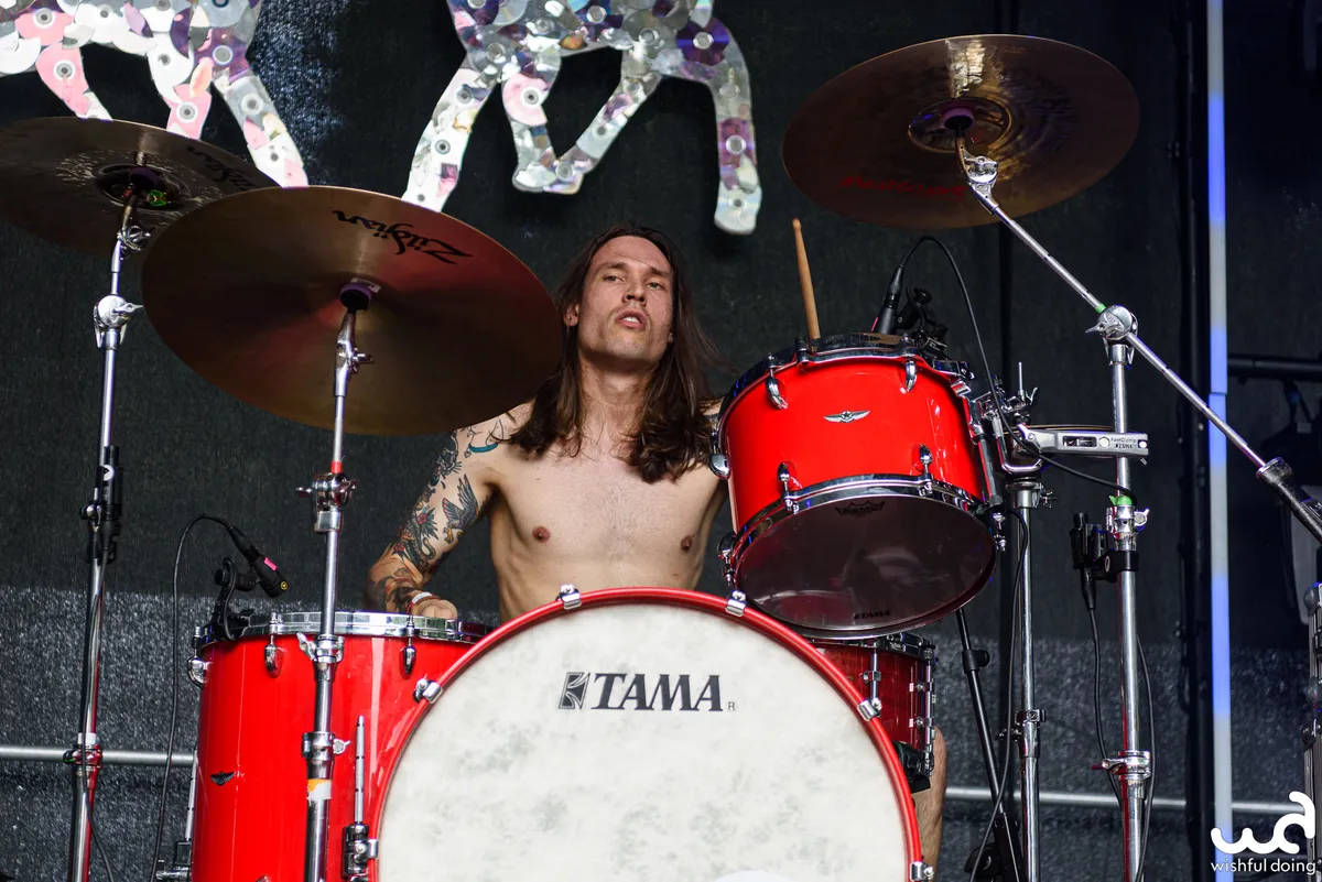 Ook ouder werk klinkt over het festivalveld, zoals ‘Temporary remedy’, een veelzijdig nummer waarin Britpop-invloeden terug te horen zijn, en het groovy rocknummer ‘Mr. Blue Sky’ (waarbij het ironisch genoeg net even regent). “Always high on energy”, zingt Lucas en dat blijkt ook wel: zijn performance is energiek, met hier en daar een danspasje, een vraag-antwoordzangspel met het publiek en enthousiaste interactie met de andere bandleden. En dat ondanks dat het geluid van een ander podium hem hindert, waarvoor hij tussendoor de geluidstechnicus vraagt een oplossing te vinden.