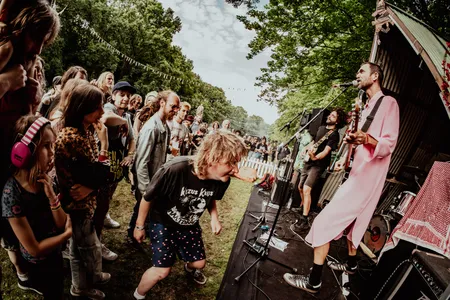 Een van de afsluiters van Werfpop is Goldkimono, die het laatste uur op P1 spelen. Deze band met voorman Martijn Konijnenburg, heeft in vijf jaar tijd al heel wat bereikt: uitgeroepen tot 3FM Talent, een top 40-hit en optredens op verschillende grote festivals zoals Lowlands, Down the Rabit Hole, Paaspop en Noorderslag. Vorige maand brachten ze hun nieuwe album uit, 'This One’s On The House', en vandaag spelen ze hier.