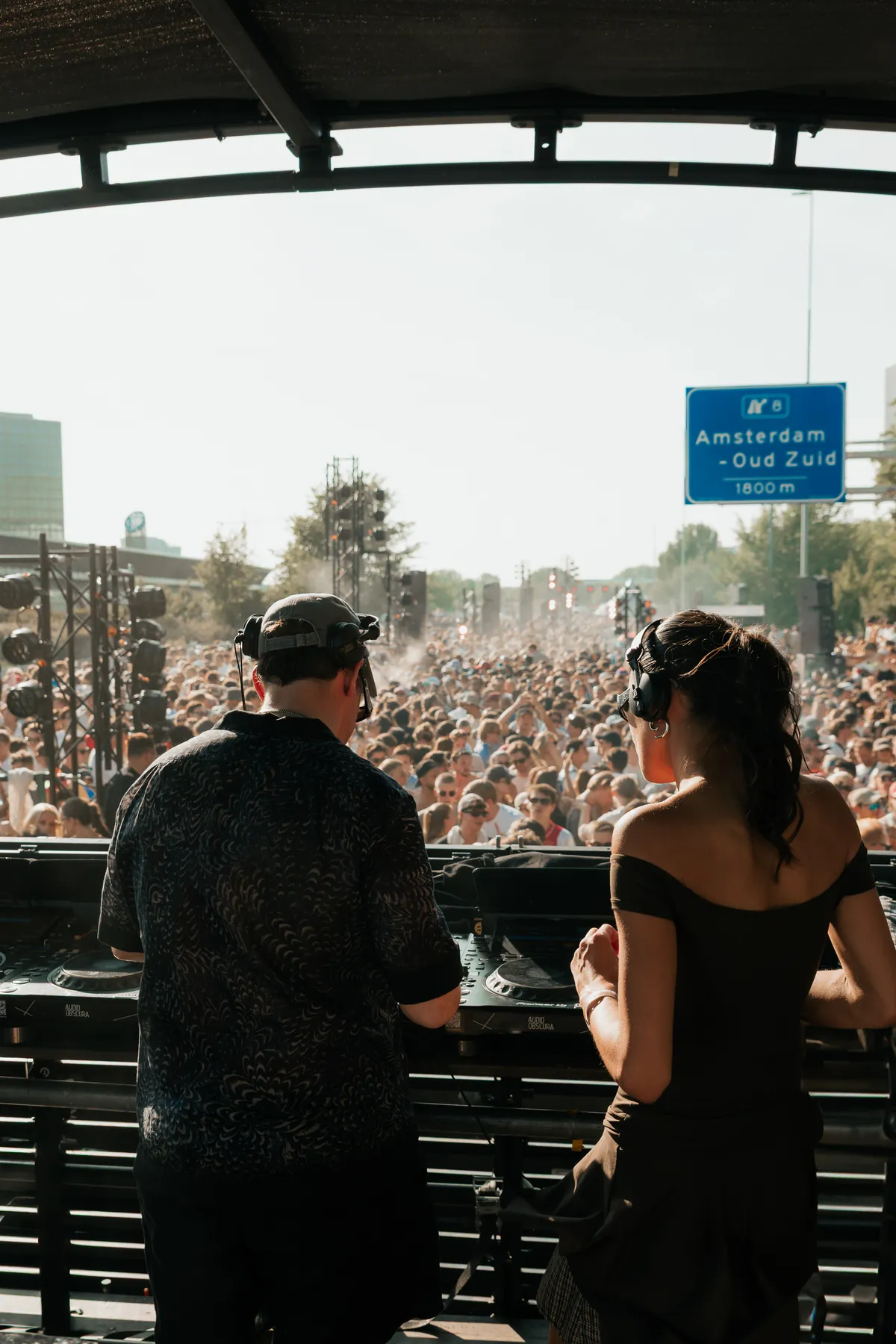 Het is tot op de laatste minuut spannend wie er achter de booth gaan verschijnen op de Highway Rave van Audio Obscura, tijdens 750 jaar Amsterdam dat op de A10 wordt gevierd. Niets qua line-up is aangekondigd, hier en daar een teasertje op Instagram bij DJ’s - en tóch krijgt de festivalorganisatie het voor elkaar om de meest gewilde plek van het 14 km lange feest te zijn. Om precies te zijn: bij hectometerpaaltje 17.6, als ‘ie er tenminste nu nog staat.