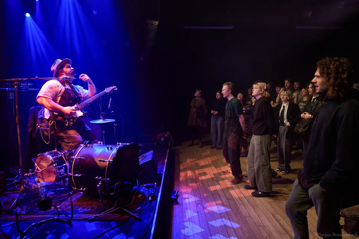 Zijn Amerikaanse folkachtige stijl voelt in eerste instantie wat spannend voor het overwegend jonge publiek, maar Van Tastik speelt zijn rol als vriendelijke grote broer overtuigend. Met luchtige humor, sterke timing en een warme uitstraling betrekt hij de zaal steeds verder bij zijn set. De sound is precies goed: rauw waar het moet schuren en helder waar het verhaal centraal staat. Het publiek beweegt mee en zingt voorzichtig mee wanneer daarom wordt gevraagd. Een preshow die precies doet wat hij moet doen.