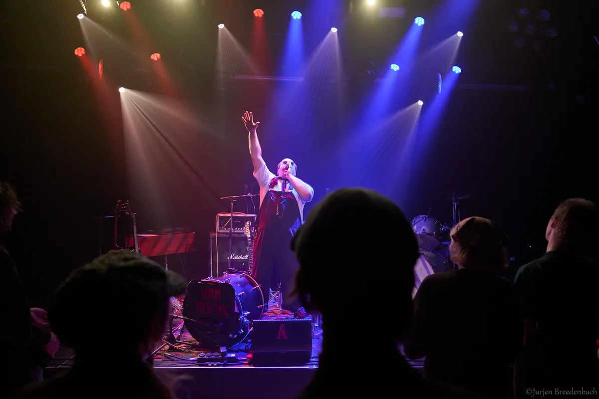 Zanger Joris ontpopt zich als een geboren podiumtijger. Hij breekt voortdurend door de vierde wand heen, begroet het publiek met een enthousiast “Hallo nieuwe vrienden!” en neemt uitgebreid de tijd om de techniek- en stagecrew van Neushoorn te bedanken. Een klein probleem met gitaar en microfoon doet niets af aan het feest; de energie blijft hoog.