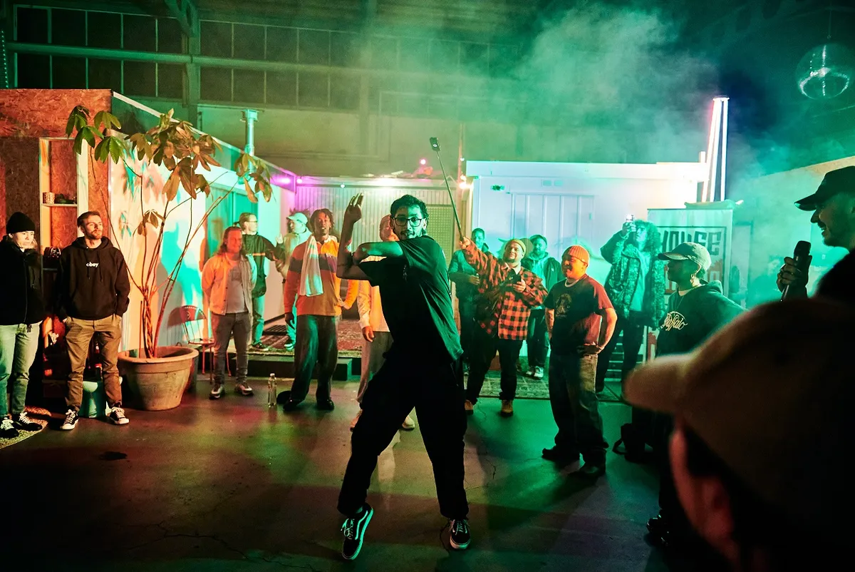 Na het welkomstwoord is het tijd voor muziek. Raven Kangee mag het spits afbijten en doet dat met relaxte flows terwijl hij ook vermeldt met nieuw werk bezig te zijn. Het muzikale programma is bomvol en er staan bekende namen tussen zoals Diggy Dex maar er is ook ruimte voor opkomend talent zoals Dayla, die de nieuwe single ‘Decemberwind’ promoot terwijl hij zijn boom bap en ambient hiphop brengt, Benoit met zijn mix van trap, drum & bass en Jersey Club. Later op de avond maakt producer Toku Mei live lo-fi beats waar ook nog over gefreestyled wordt door de aanwezige artiesten tijdens een open mic.